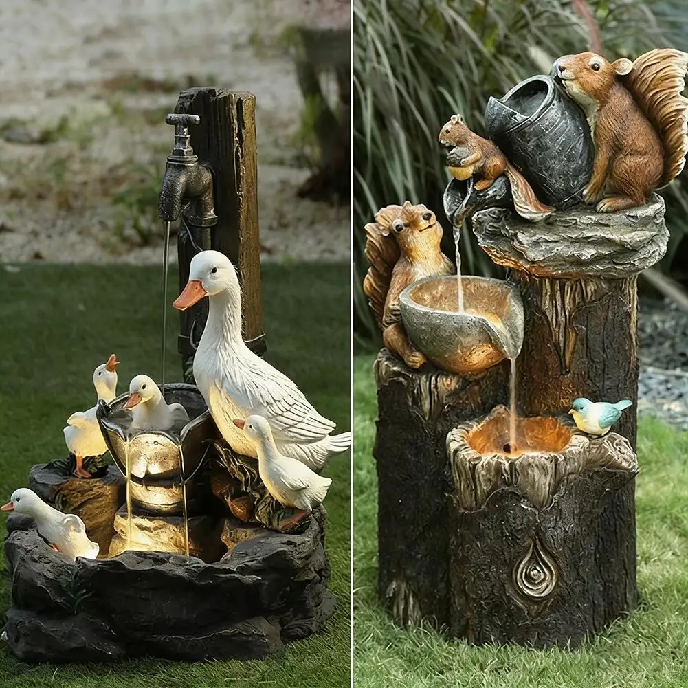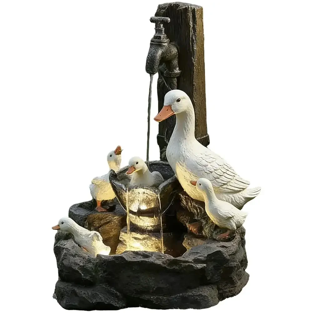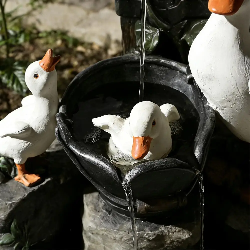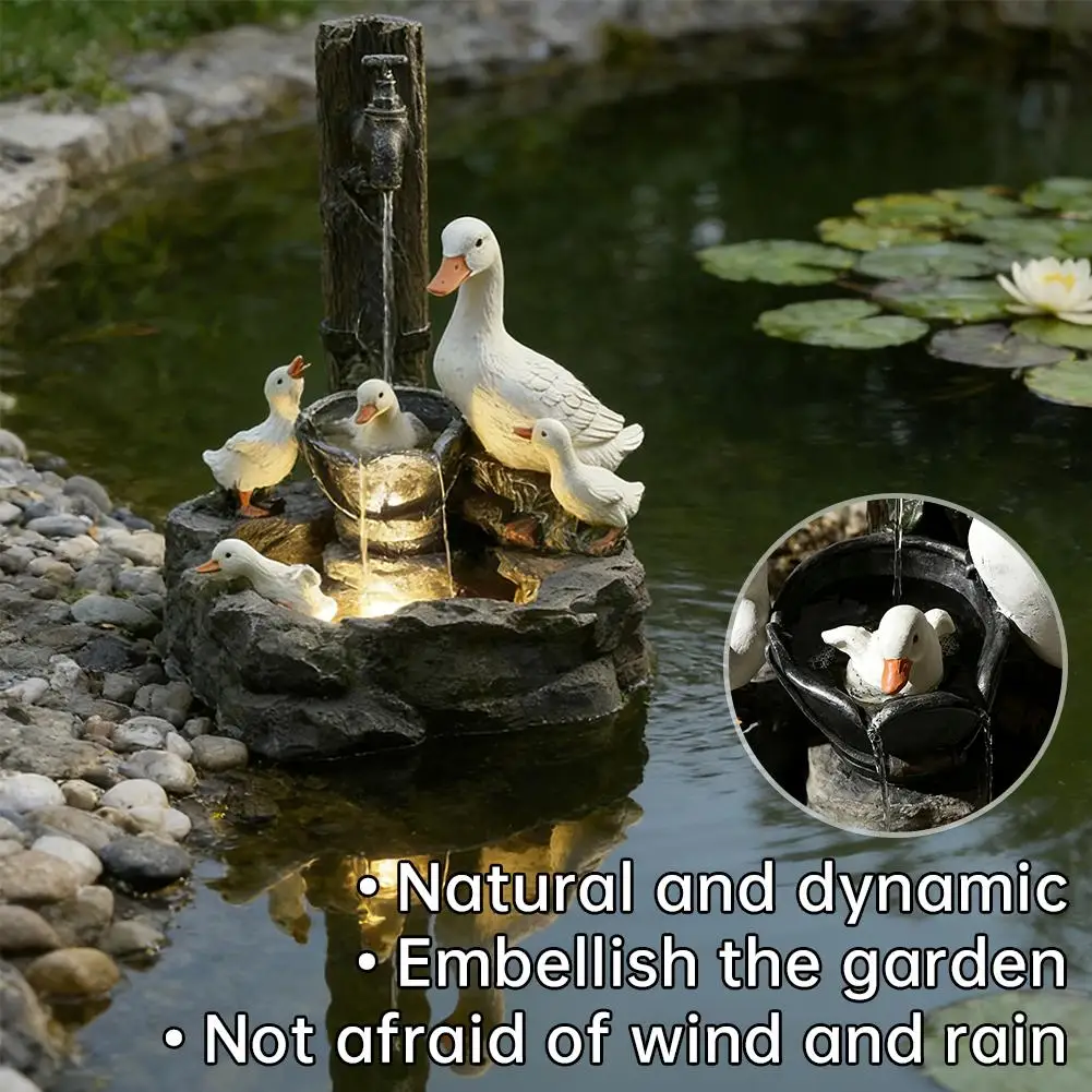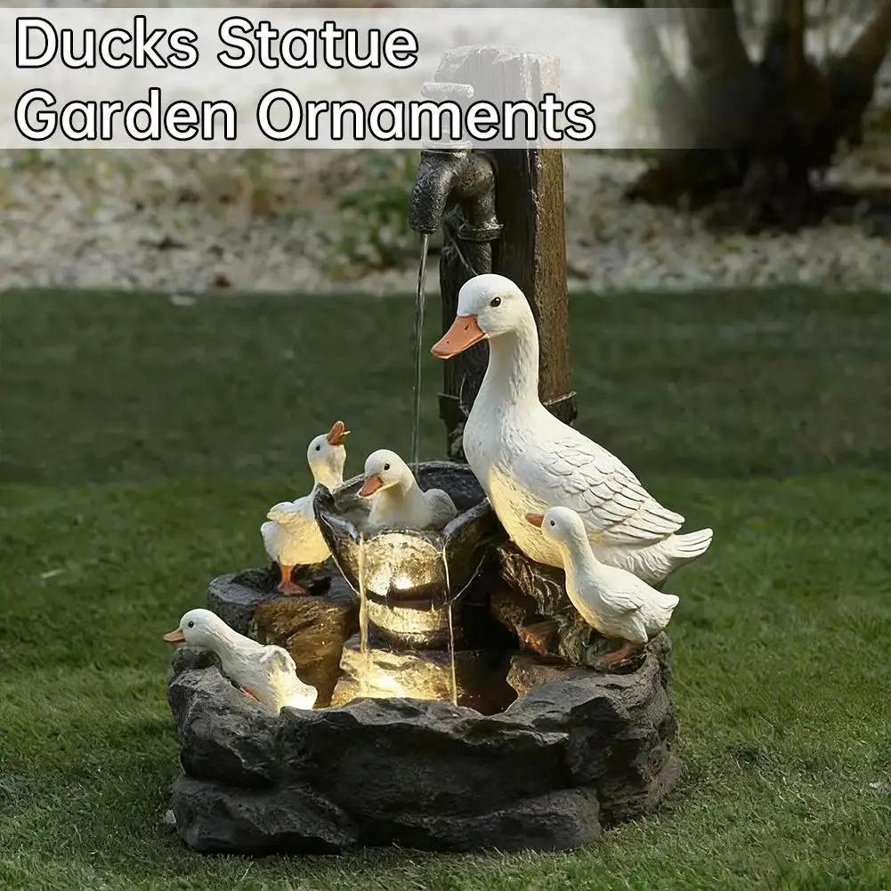 Garden Ornaments Ducks Statue Outdoor Statue Gifts With Solar Landscaping Fountain Sculpture Decoration Water Lights Waterp U9S8