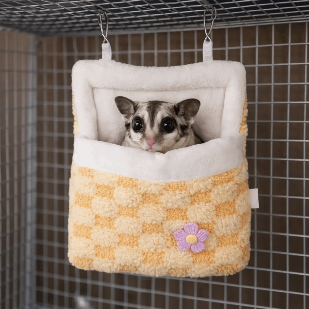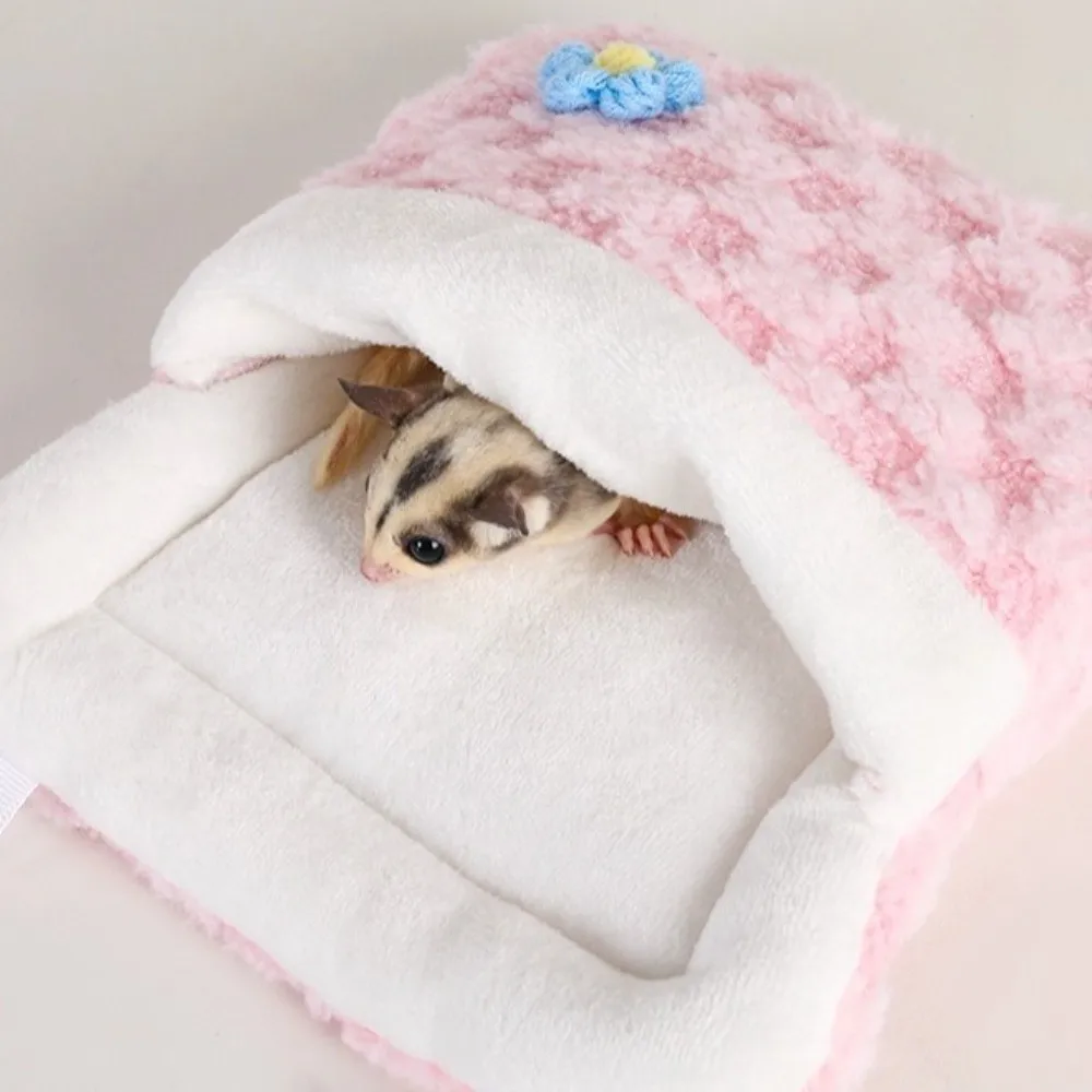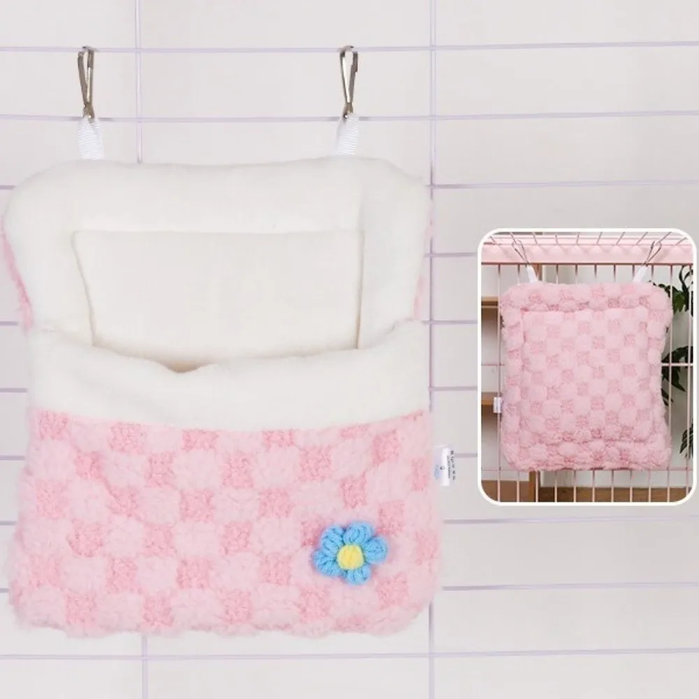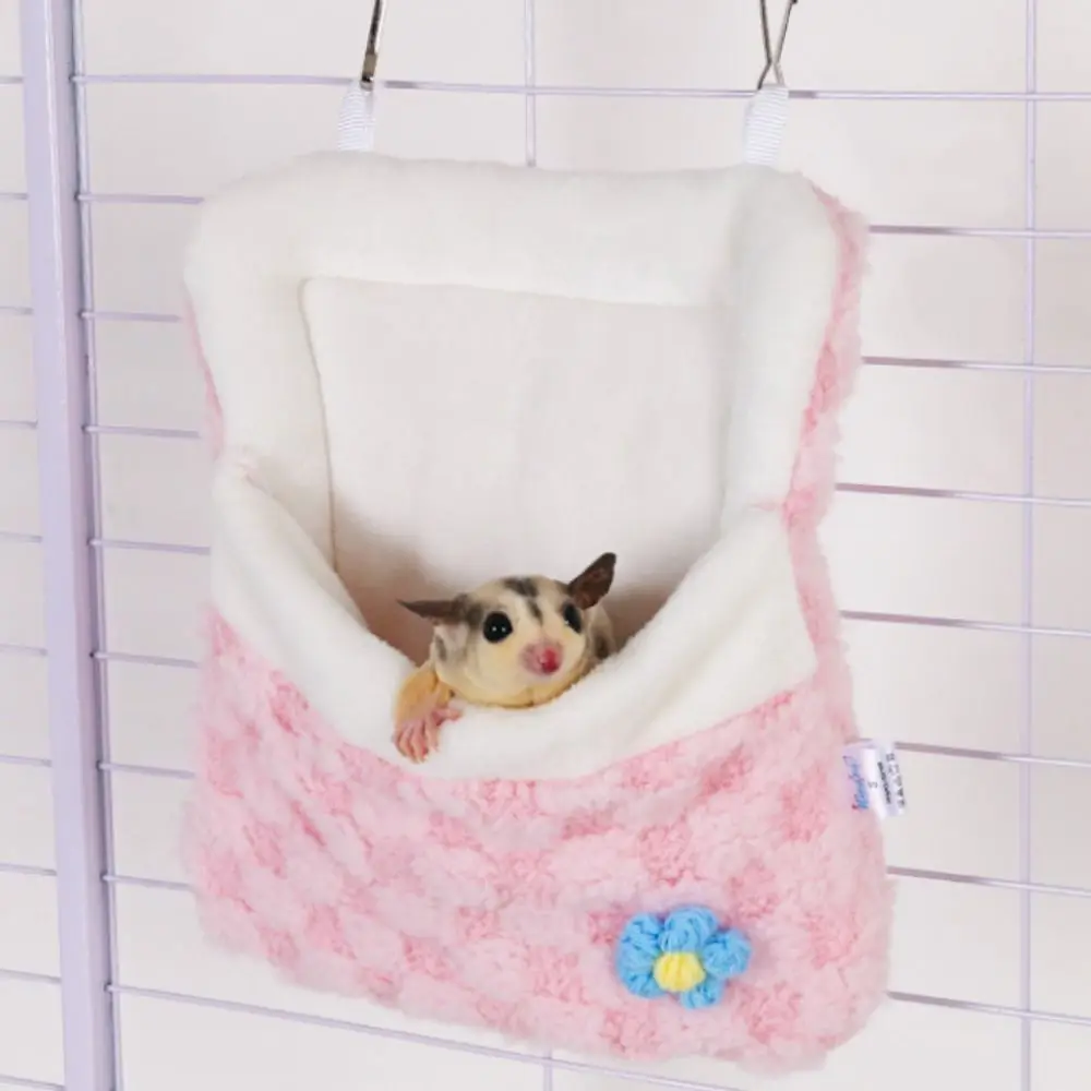 Hamster Cages Warm Hamster Plush Hammock Thicken Soft Hamster Sleeping Bag 3D Flower Velvet Pet Hideout Bed Winter
