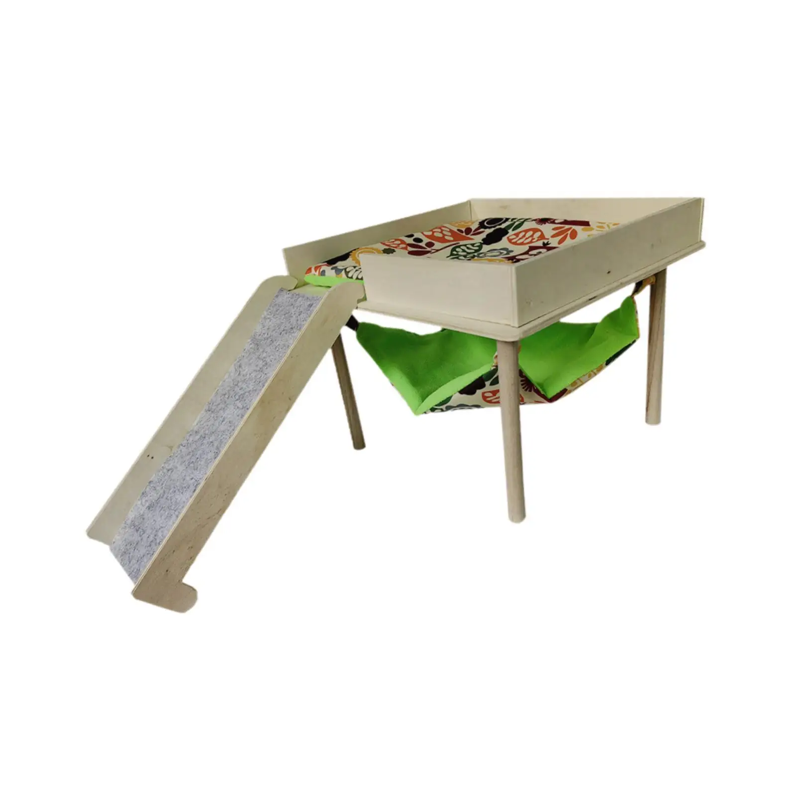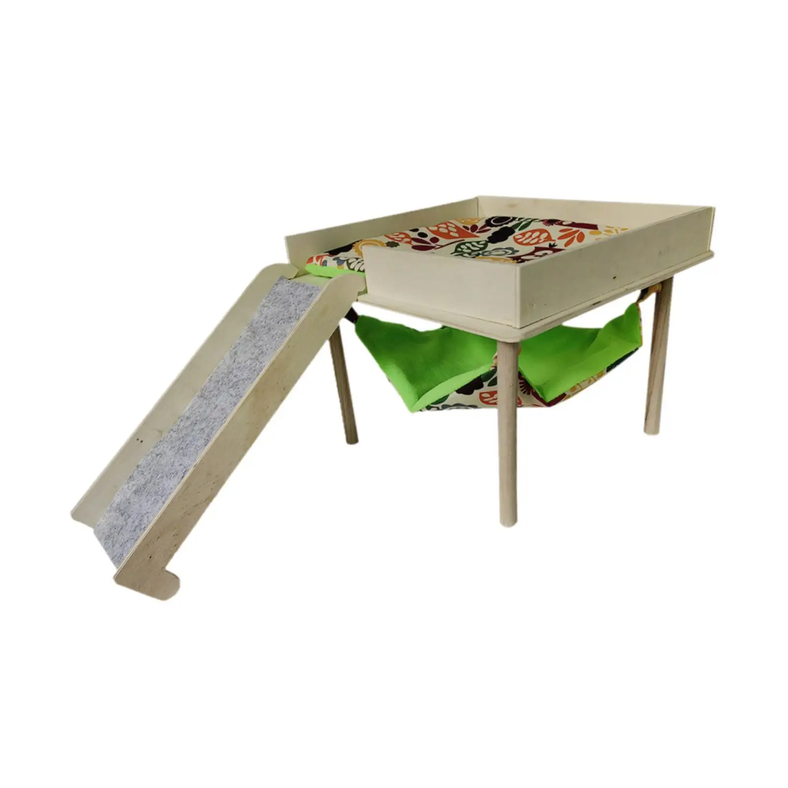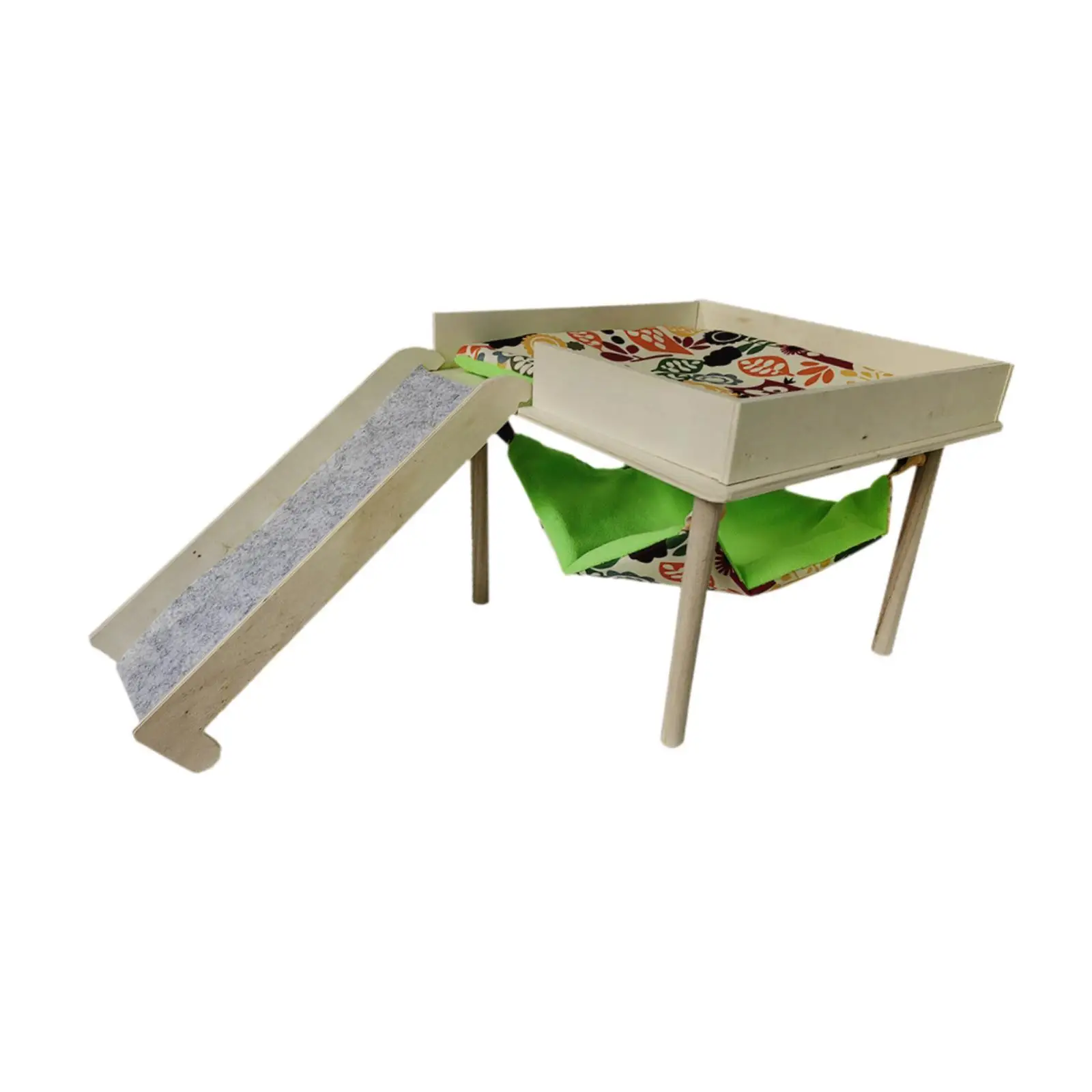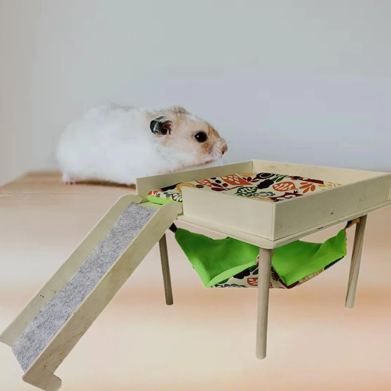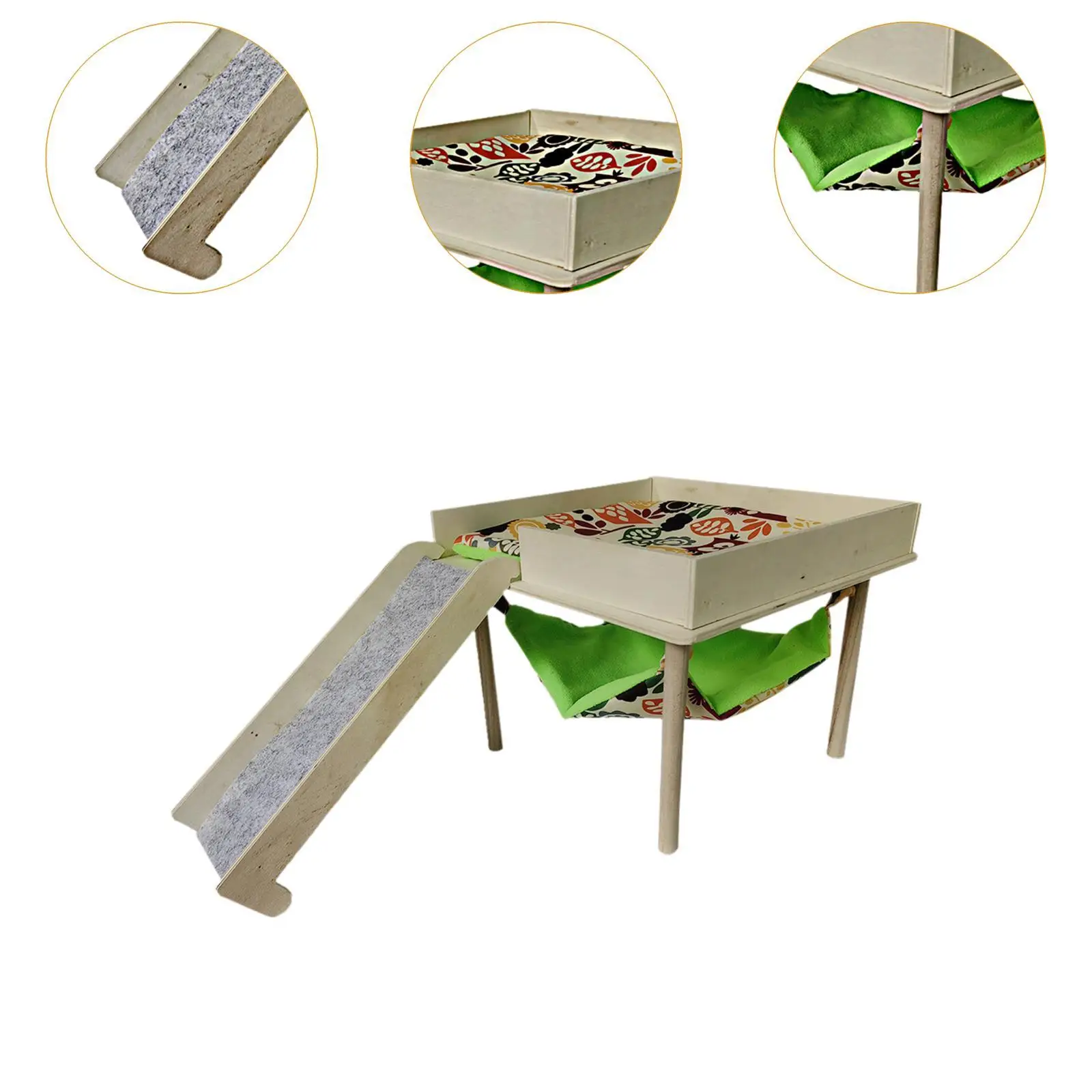 Material: This guinea pigs hammock with platform is made of wooden material, which is wear resistant and bite resistant, can be used for a long time.