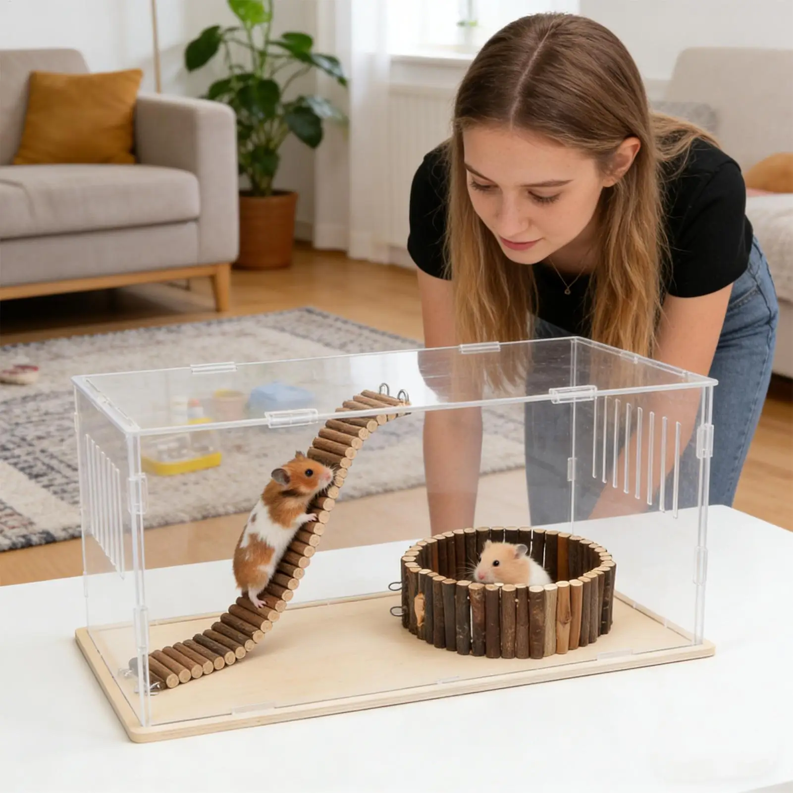 1.Chewing Fun Meets Tooth Care: Made from unpainted natural wood, the Hamster Bridge doubles as both a fun chewing toy and a practical tool for preventing overgrown teeth, supporting your pet’s teeth health through enjoyable daily grinding activities in their environment