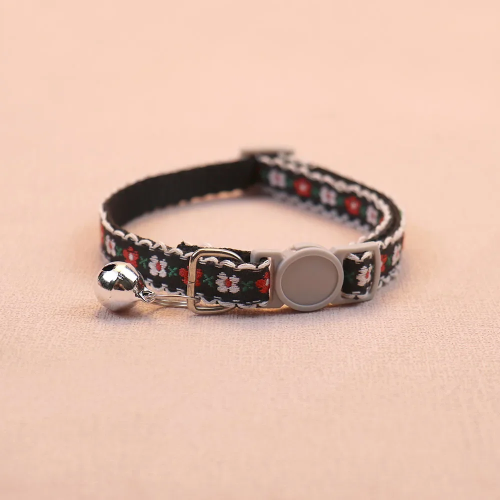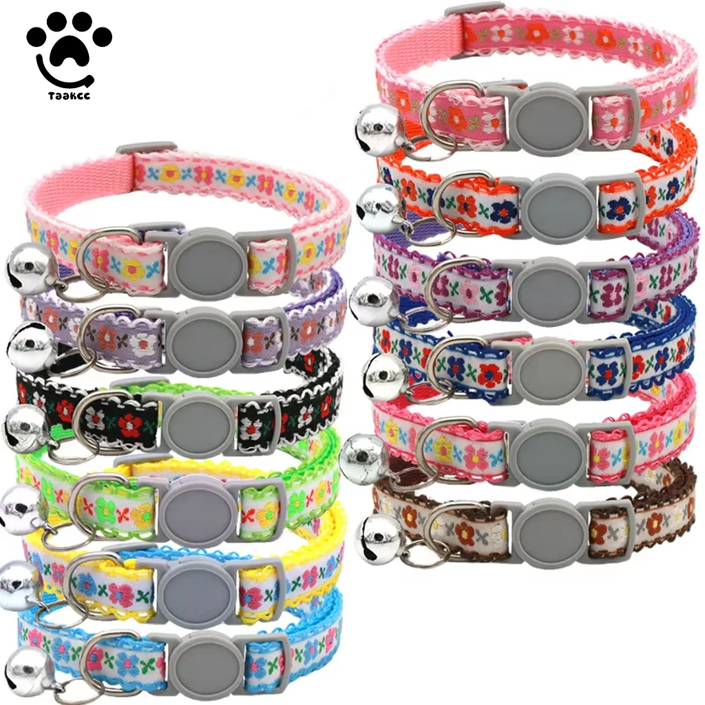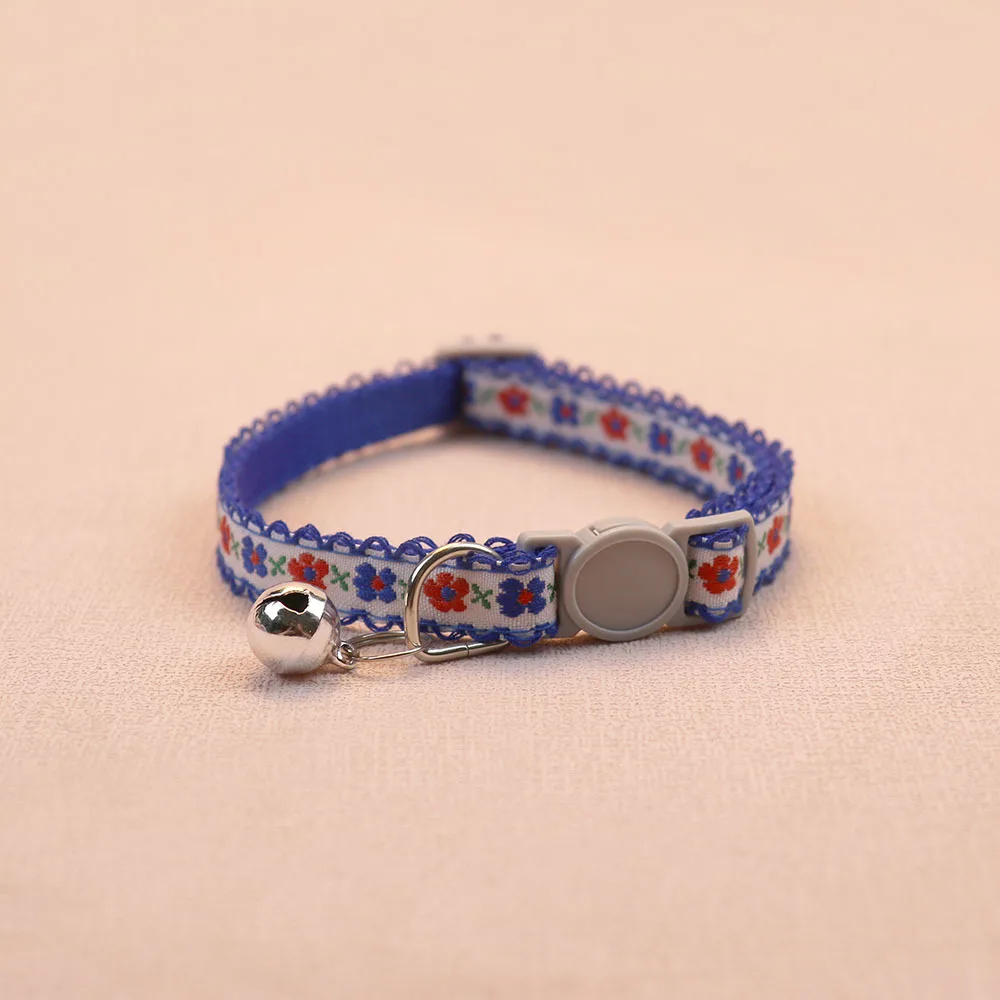 Hand Knitting Flower Pet Collar With Bell Colorful Retro Style Cat Collar Adjustable Safety Necklace For Puppy Cat Accessories
