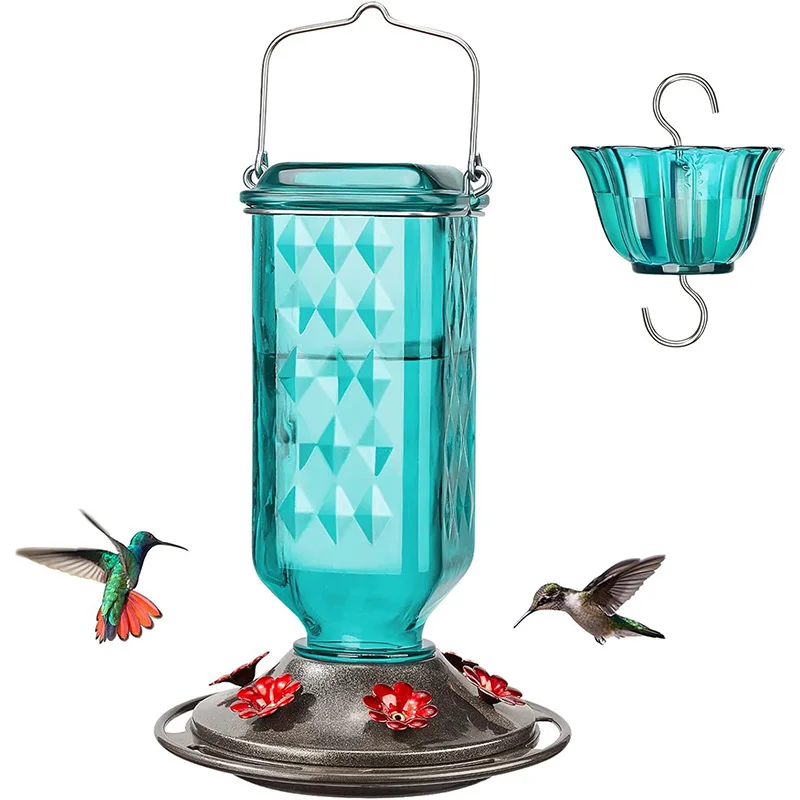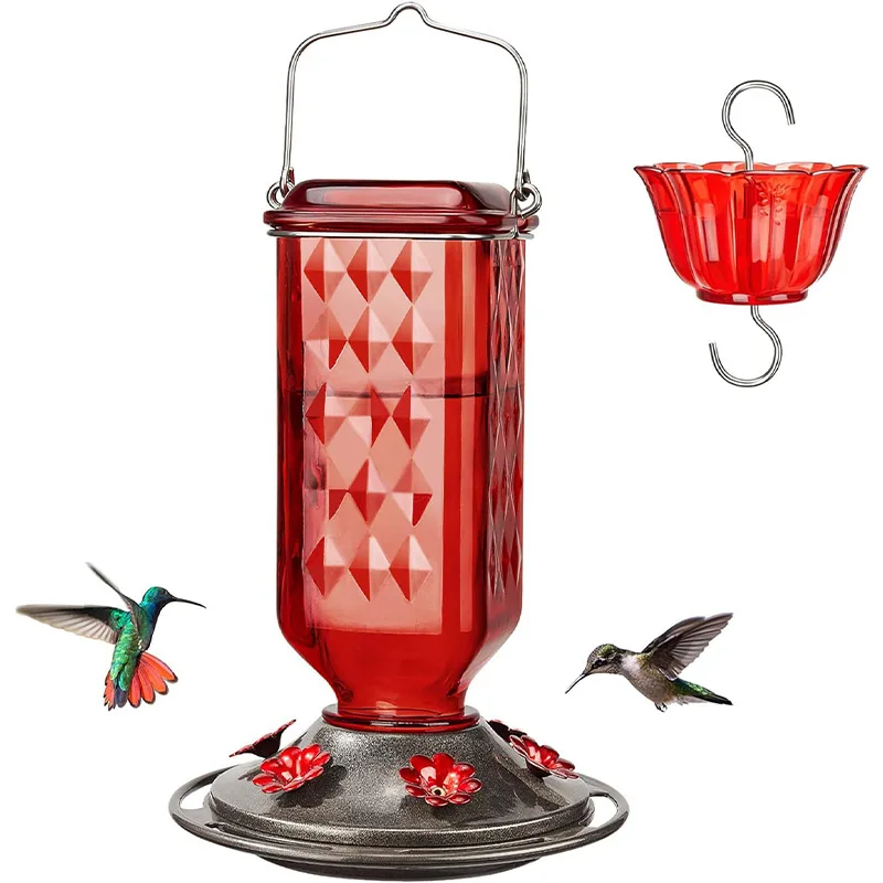Hanging Glass Hummingbird Feeder, Outdoor Bird Leak Proof Base Feeder, Six Feeding Ports, Suitable For Outdoor Garden Decoration