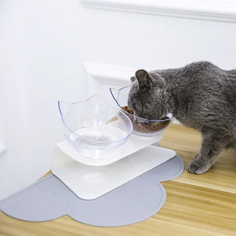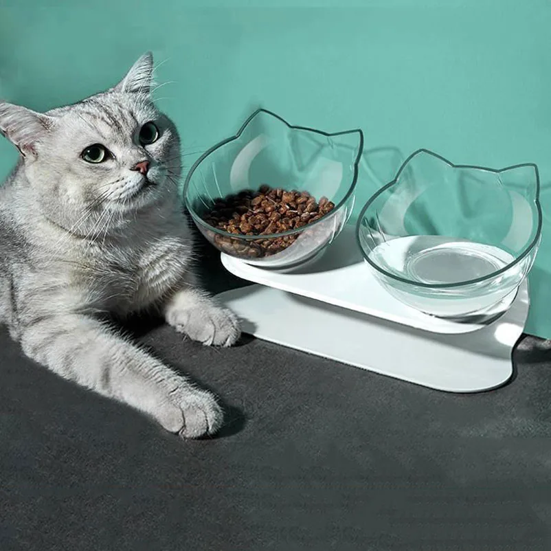 Hot selling pet bowl cat neck protector transparent tilted cat face bowl splash-proof and non-slip pet supplies