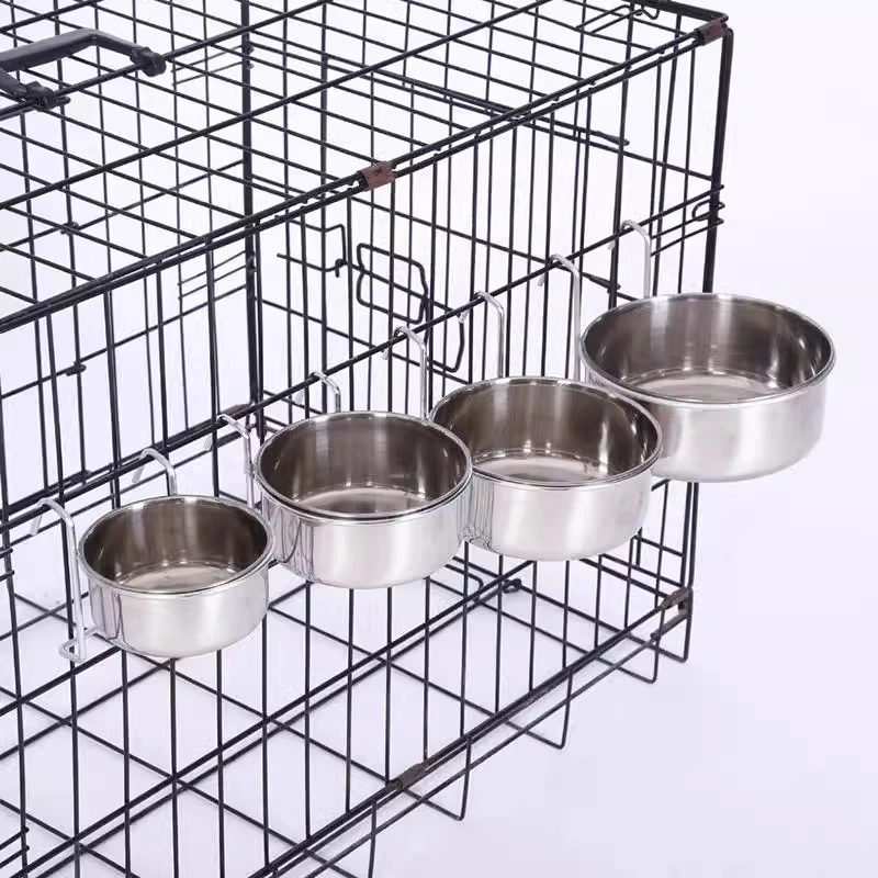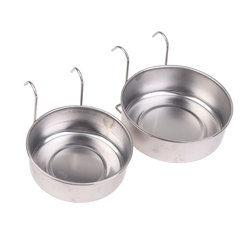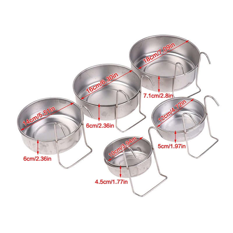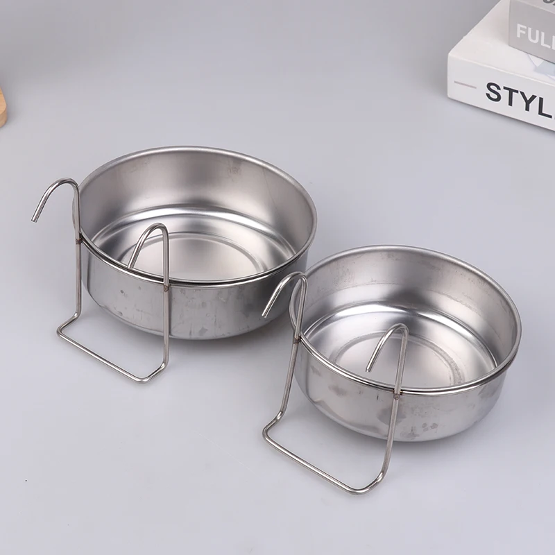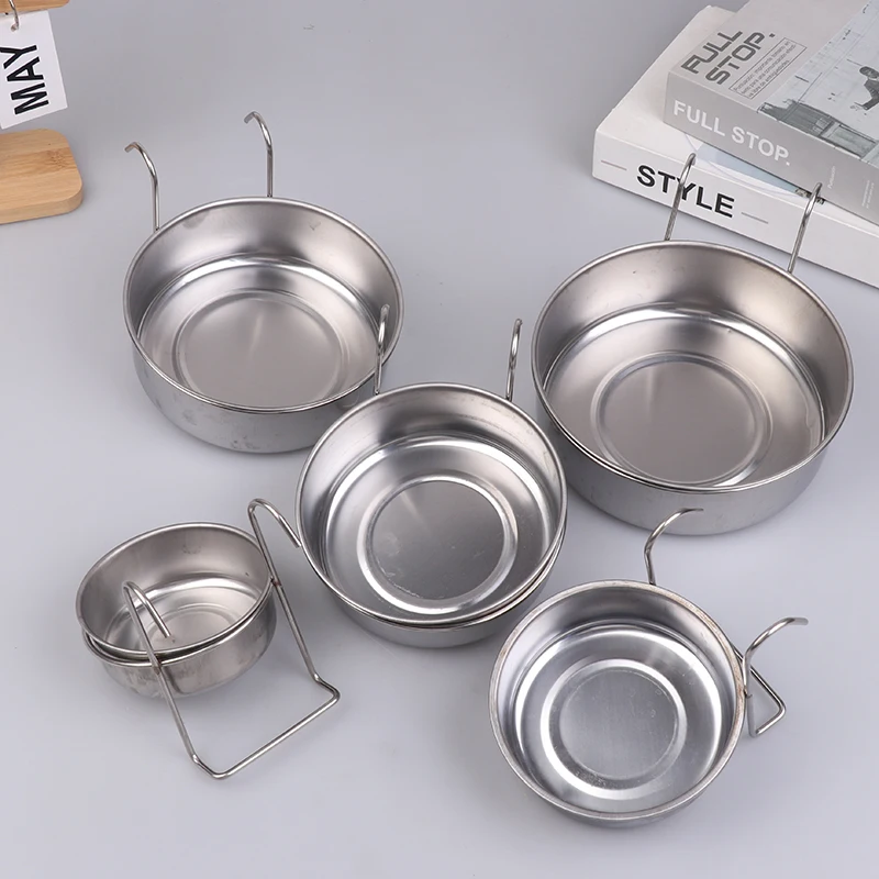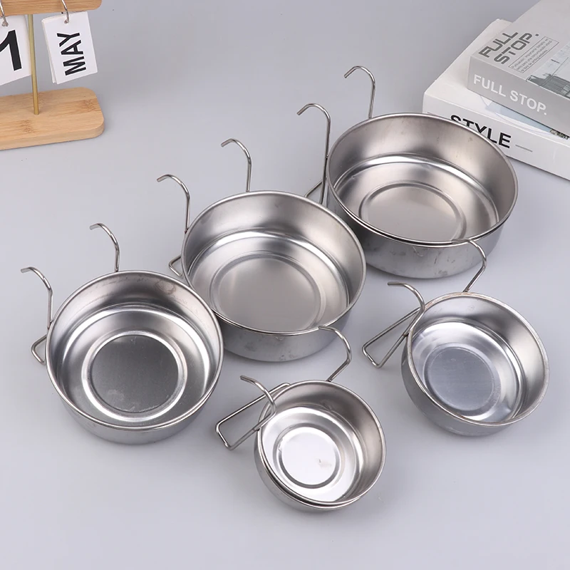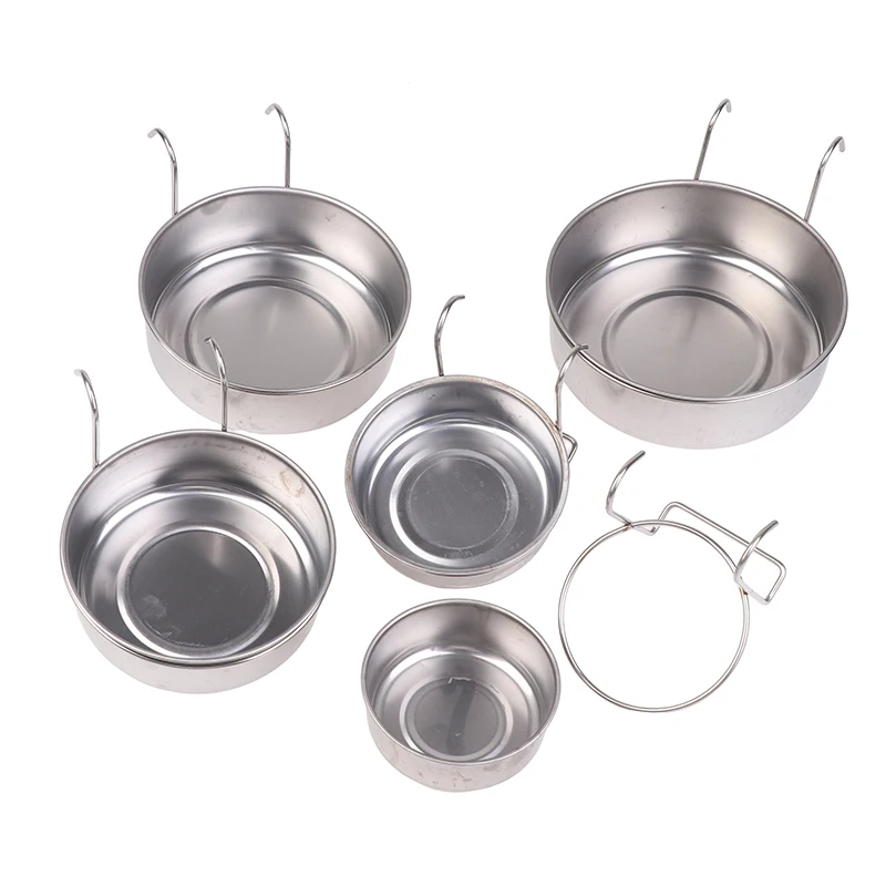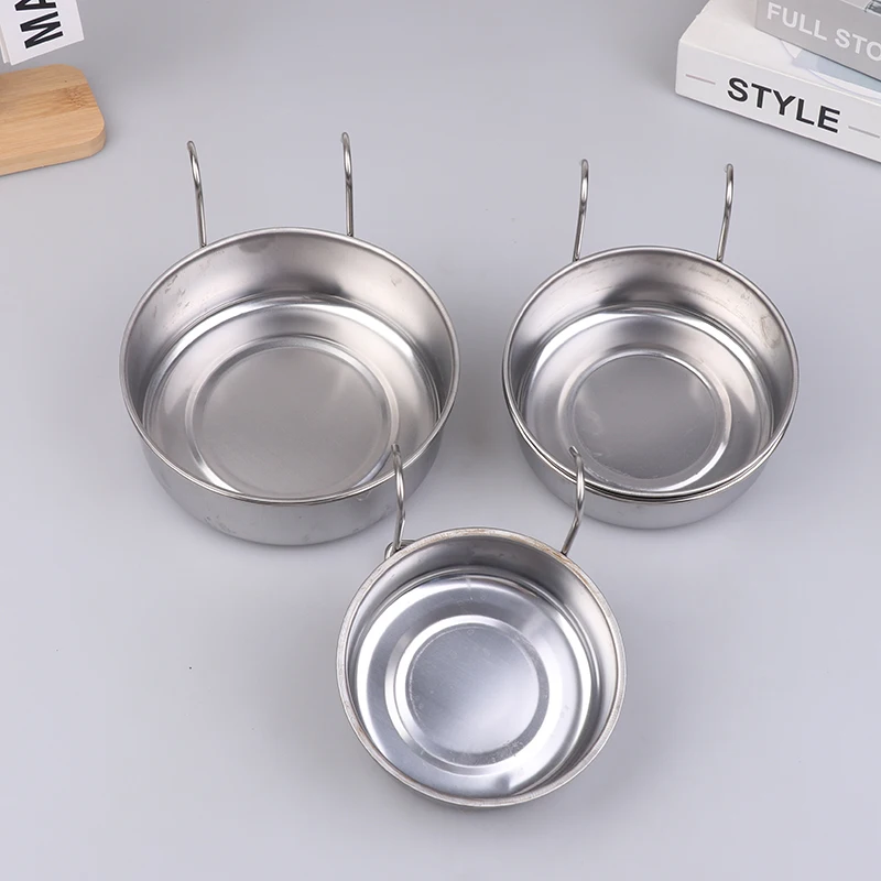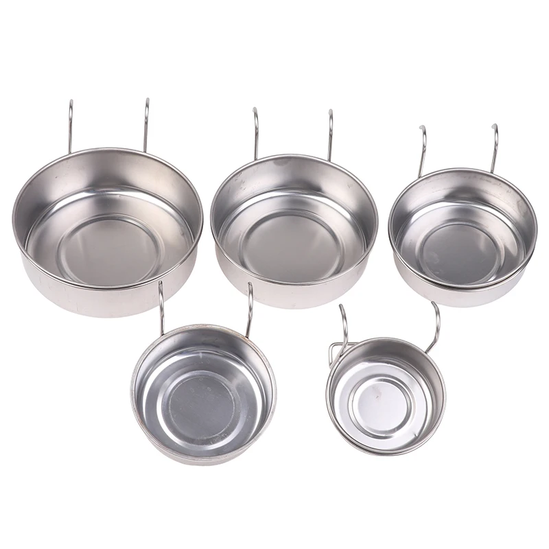 Household 10-18cm Crate Dog Cat Bowl Stainless Steel Hanging Pet Cage Bowl Food Water Feeder Coop Cup For Cat Puppy Birds Rats