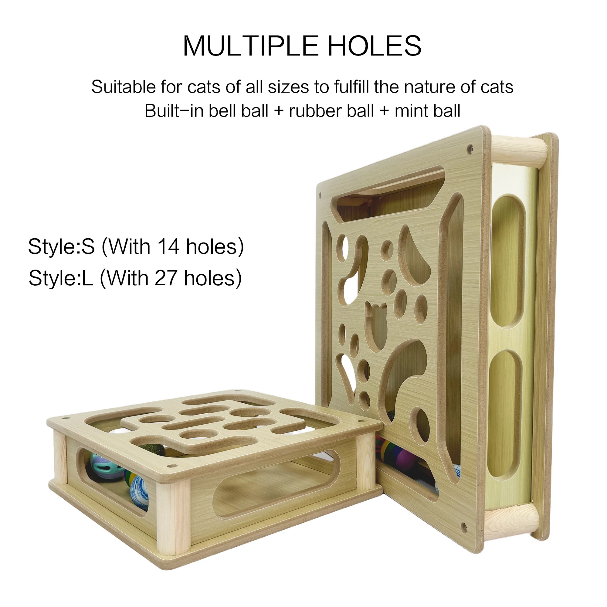 Two Size Options: Available in S and L sizes, the large box has 27 small holes, and the small box has 14 small holes, catering to different households and cat needs.