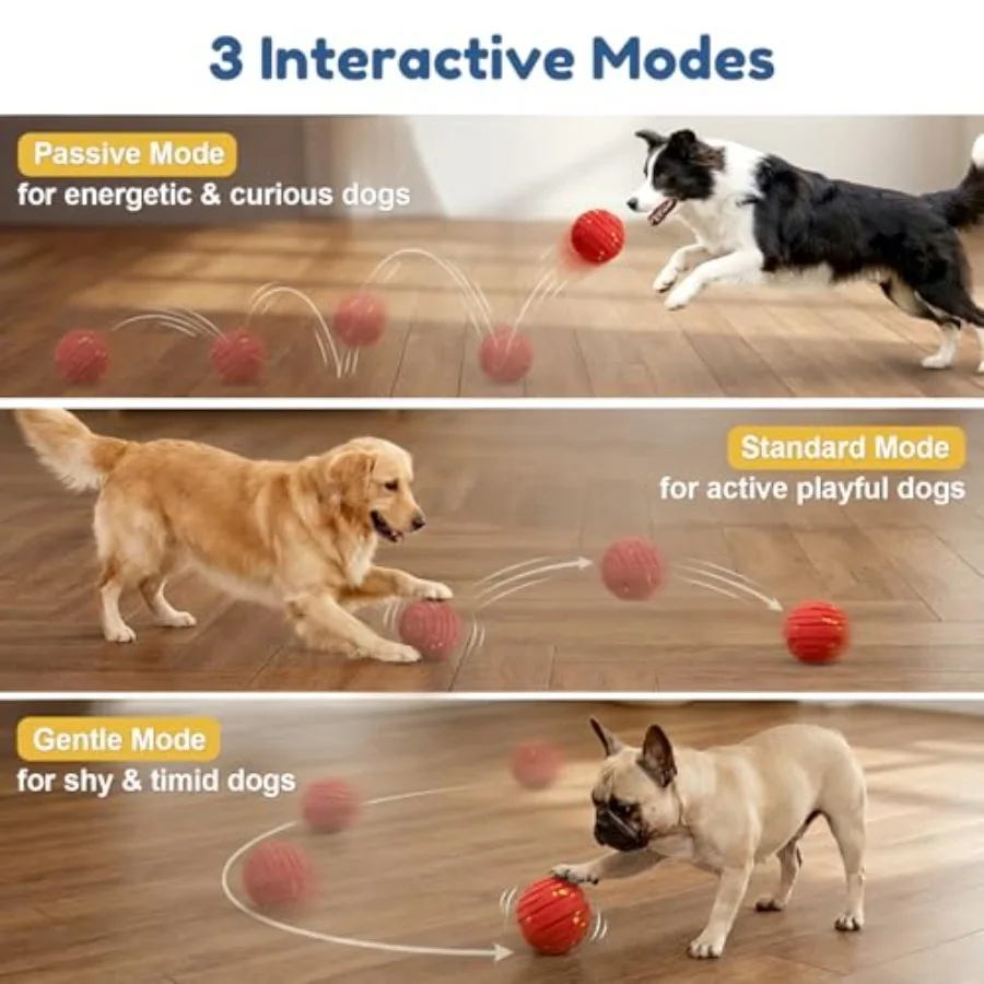 Interactive Dog Toys Smart Interactive Dog Ball with 3 Modes Auto-MovingandBouncing High-ResilienceandChew Resistant E-TPU Dog
