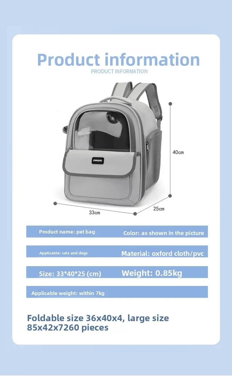 SPECIFICATIONS Brand Name: NONE Breed size: Medium Breeds CN: Sichuan Choice: yes Closure Type: Zipper High-concerned chemical: None Item Type: Backpacks Lifestage: All stages Origin: Mainland China