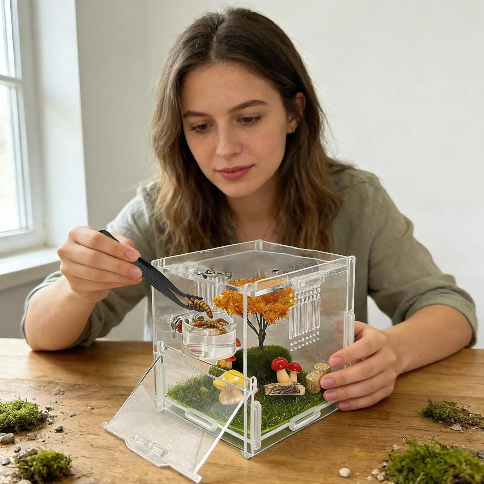 1.Enhanced Feeding Solution: The jumping spider feeding dish incorporates a magnetic feeding bowl that meets daily feeding needs, ensuring stability and minimizing spillage or disorder, which enhances the ease of caring for your jumping spider during regular feeding routines