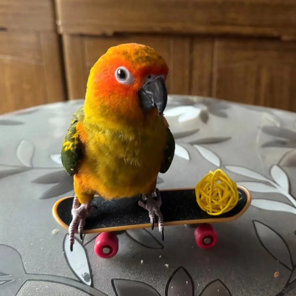 Size:Skateboard: about 13.8 x 4.3 x 2.7cm(5.43 x 1.69 x 1.06in),Feeding Ball: diameter 7-8cm(2.76-3.15in)