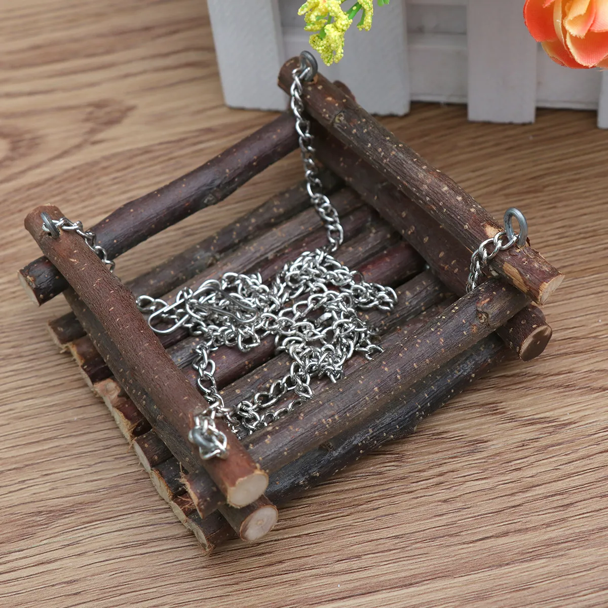 Natural Wood Hamster Hanging Bed Light Weight Simple Design Easy to Store Clean Multi Use As Swing Or Bed for Small Pets Animal