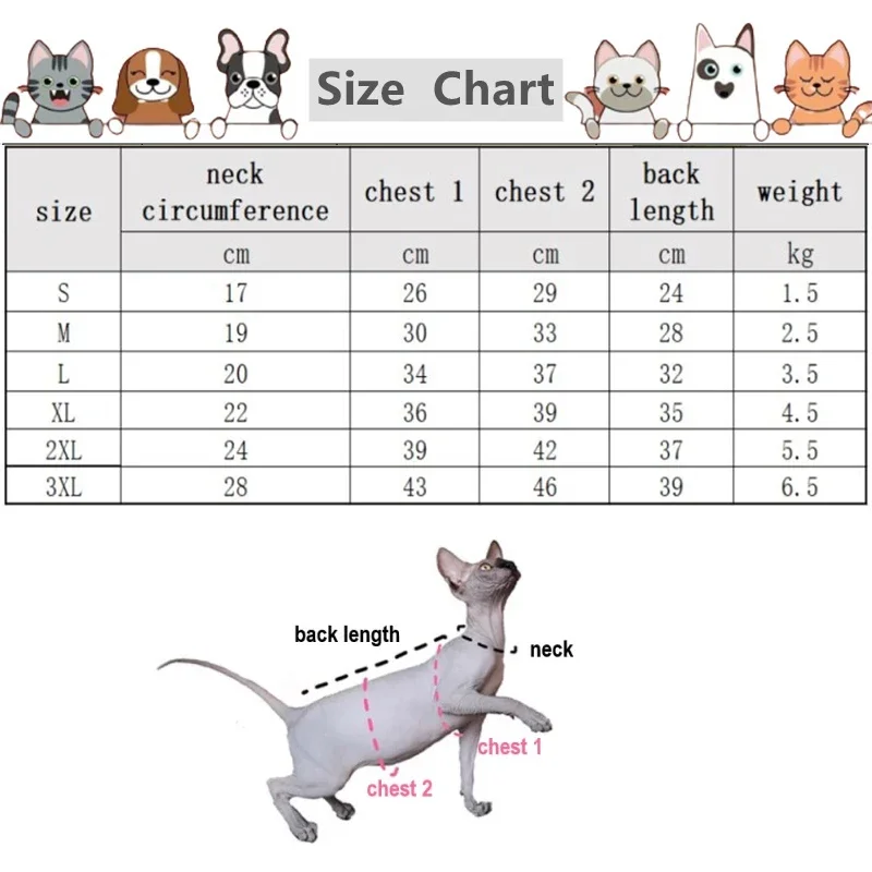 ❤Please measure the cat's front chest (chest 1) and back abdomen (chest 2)