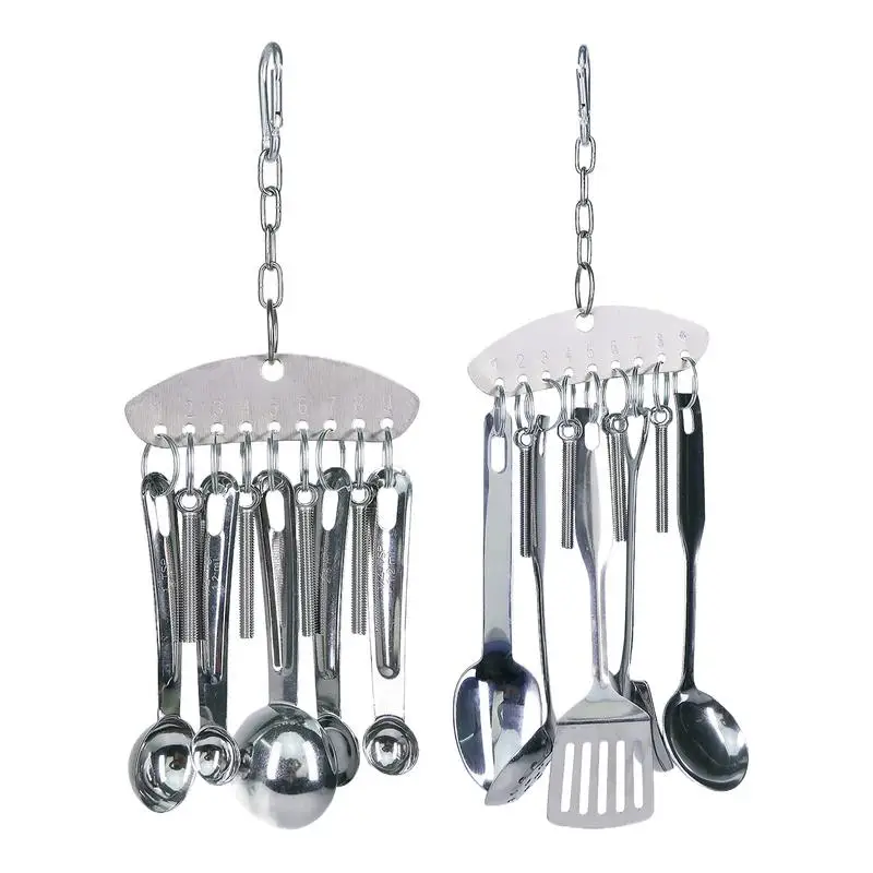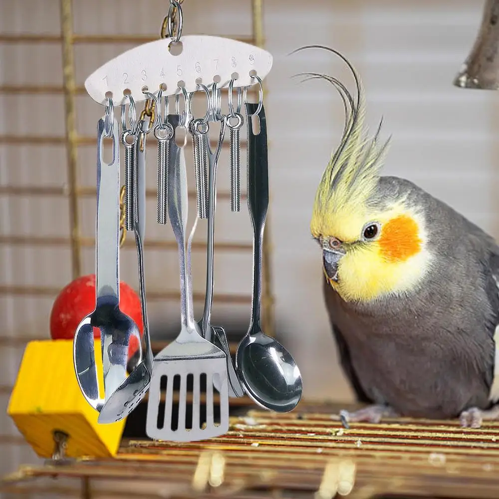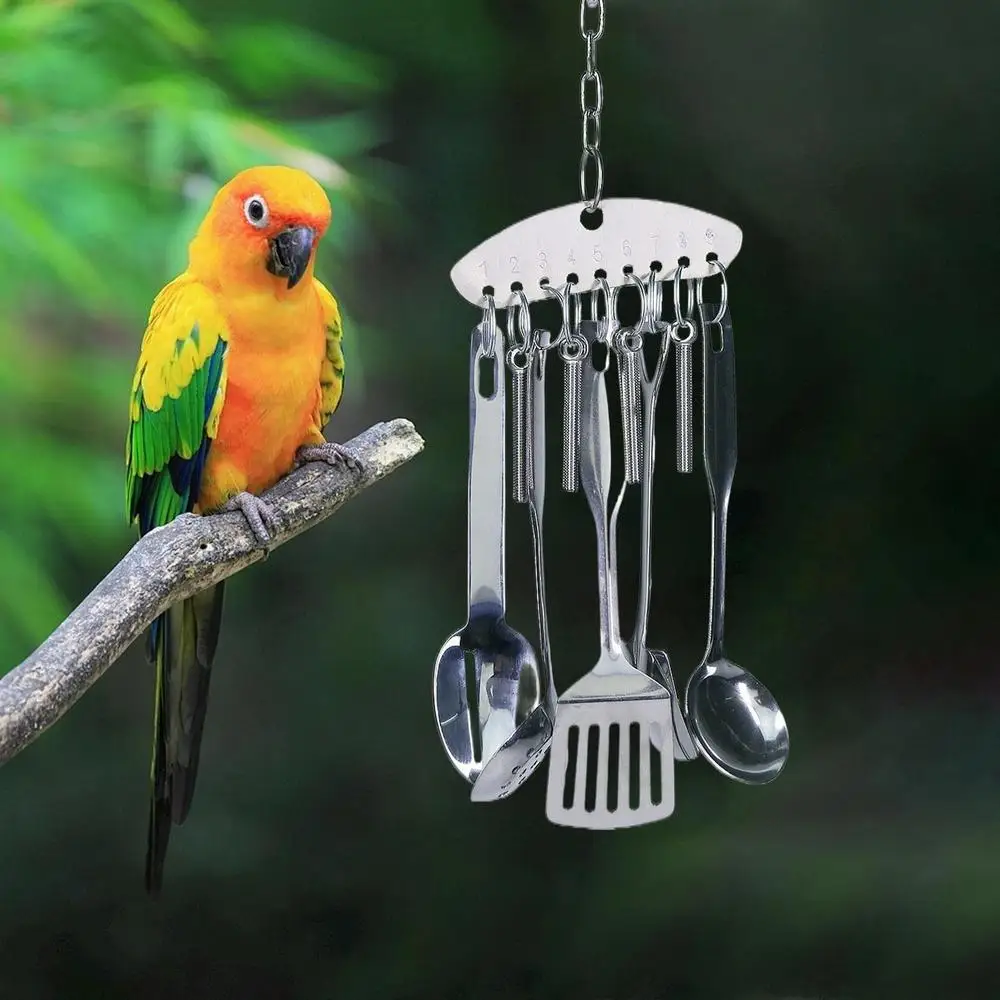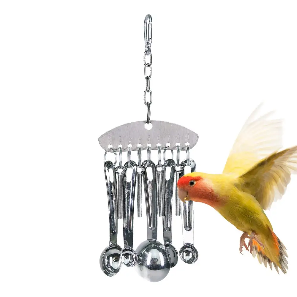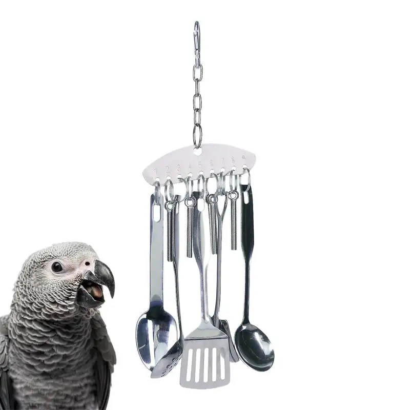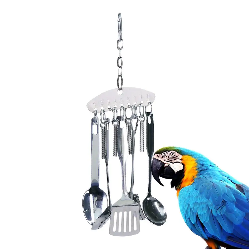 Parrot Stainless Steel Spoon Toy Bird Parrots Gnawing Scoops Climbing Toys Pets Bird Cage Accessories Hanging Spoon Ring Toy