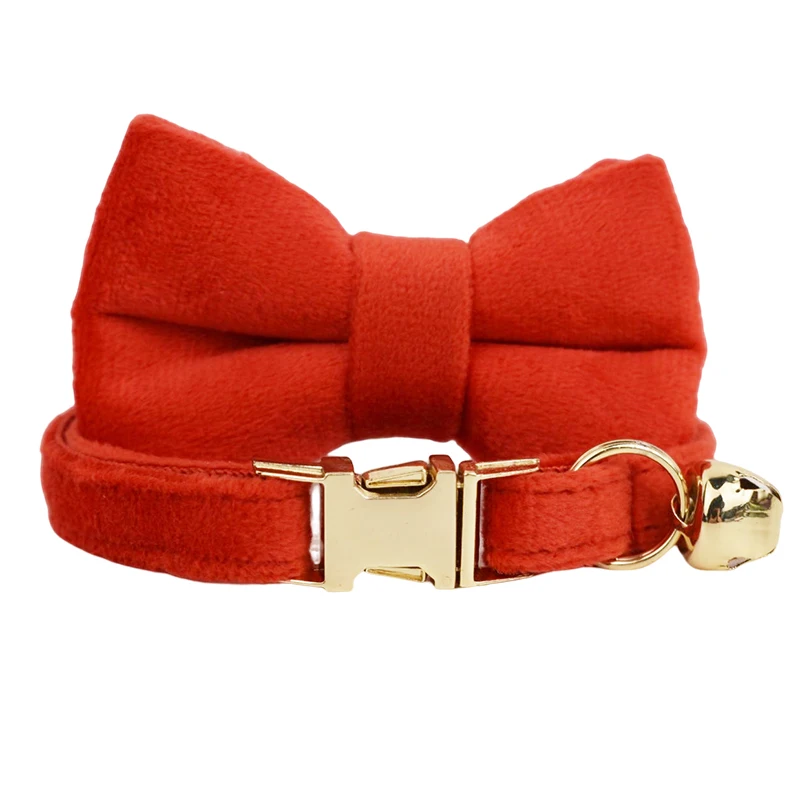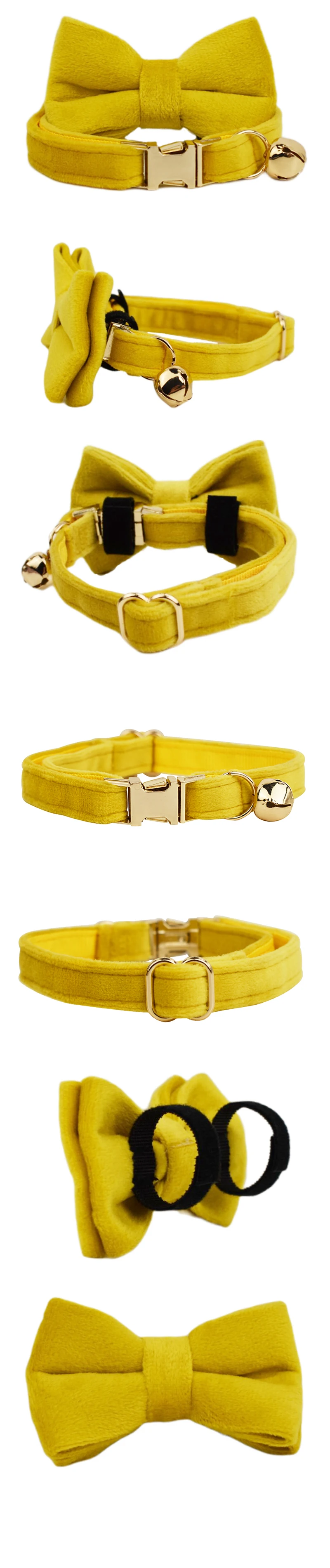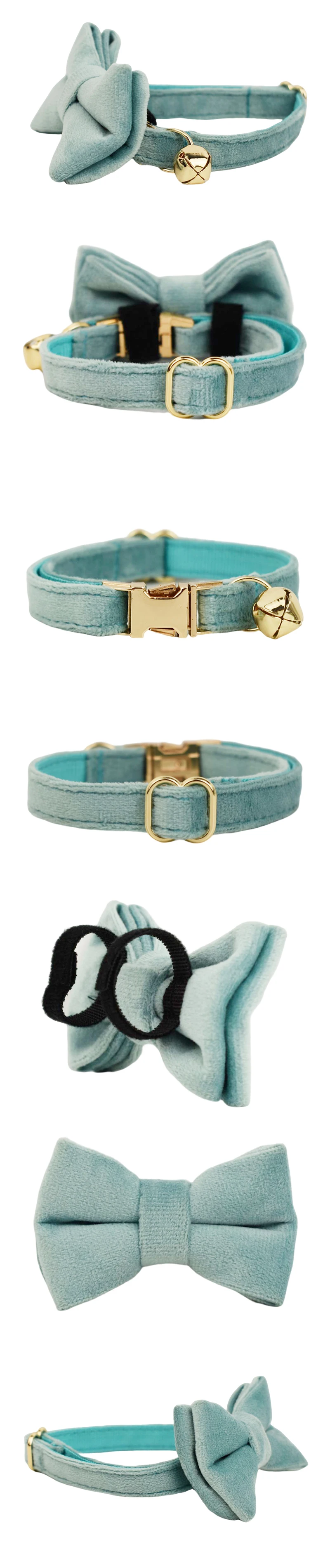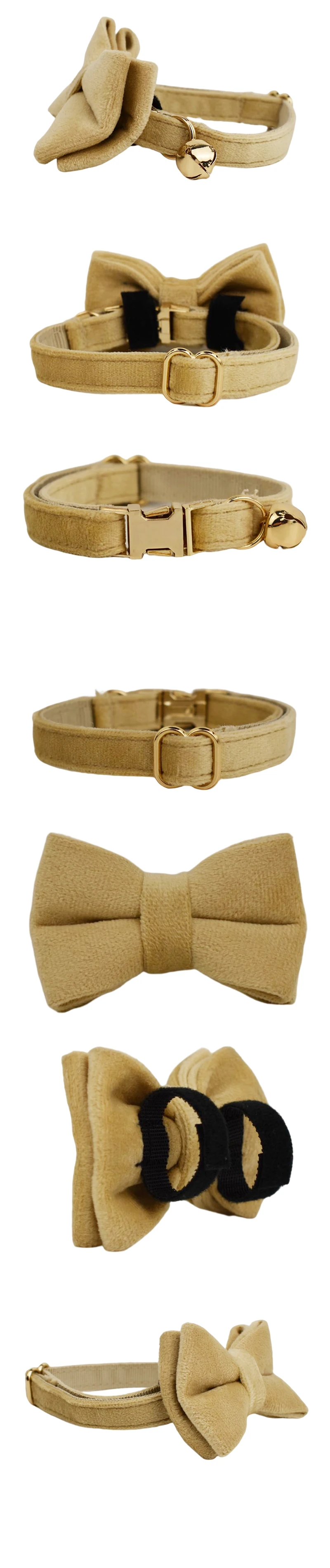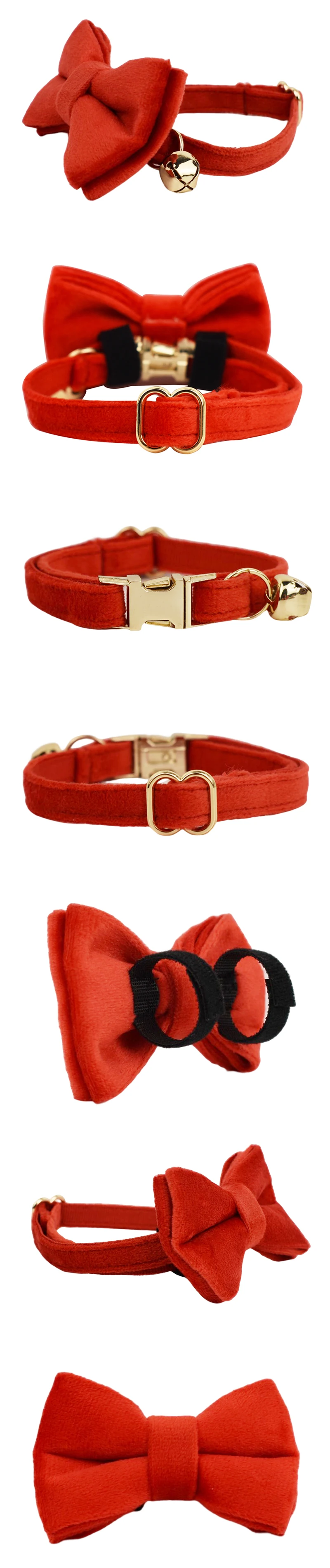 Velvet Collar Cat Kitten Necklace Personalized Collars with Bell Bow tie Engraved Custom Collars for Cats Puppy Small Dogs Chihuahua Collar with Bow tie for Cat Accessories