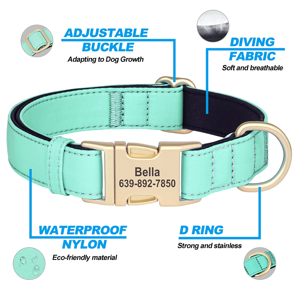 Personalized Dog Collar Nylon Leather Dog Collars Customized ID Tag Necklace Adjustable for Small Medium Large Dogs Pitbull Pug