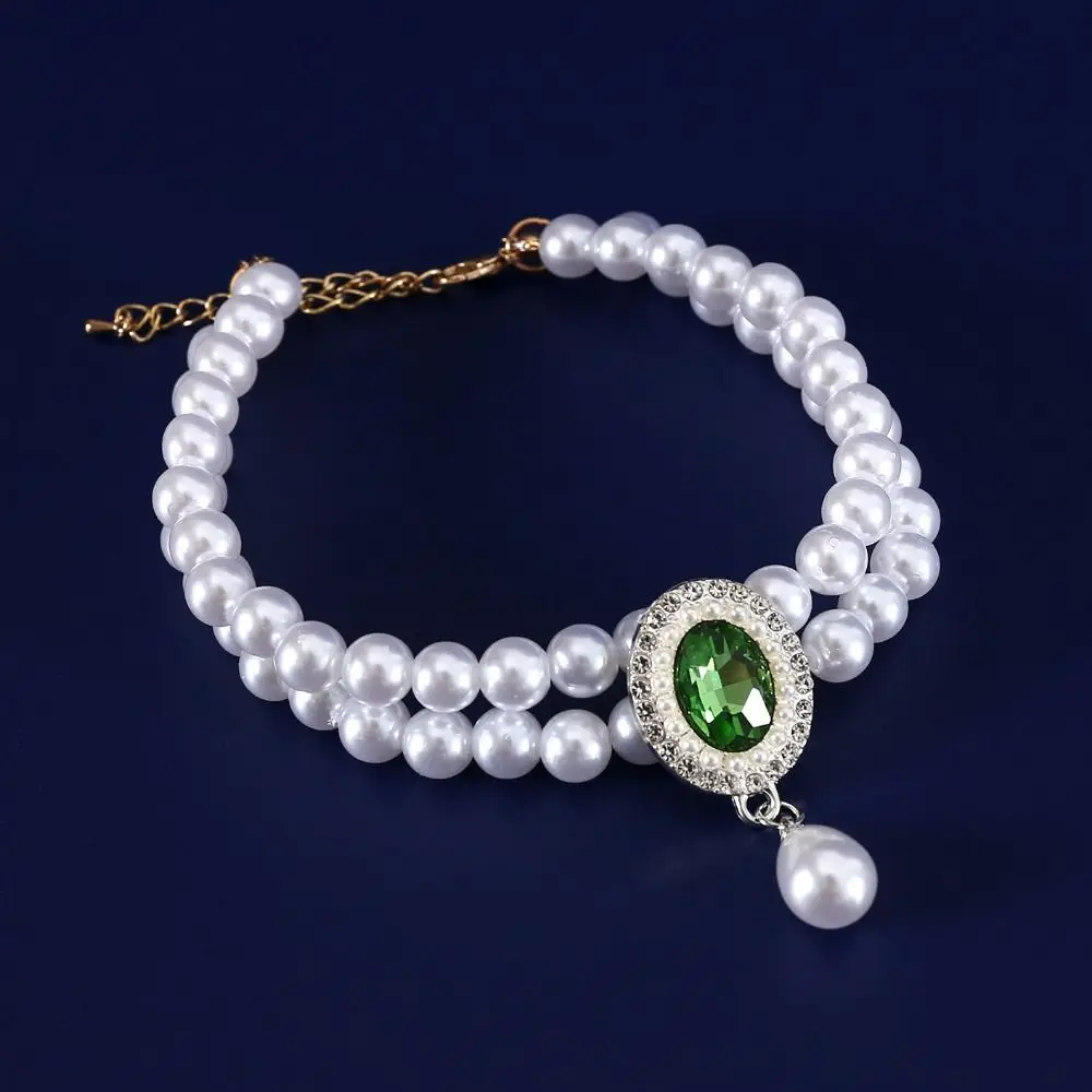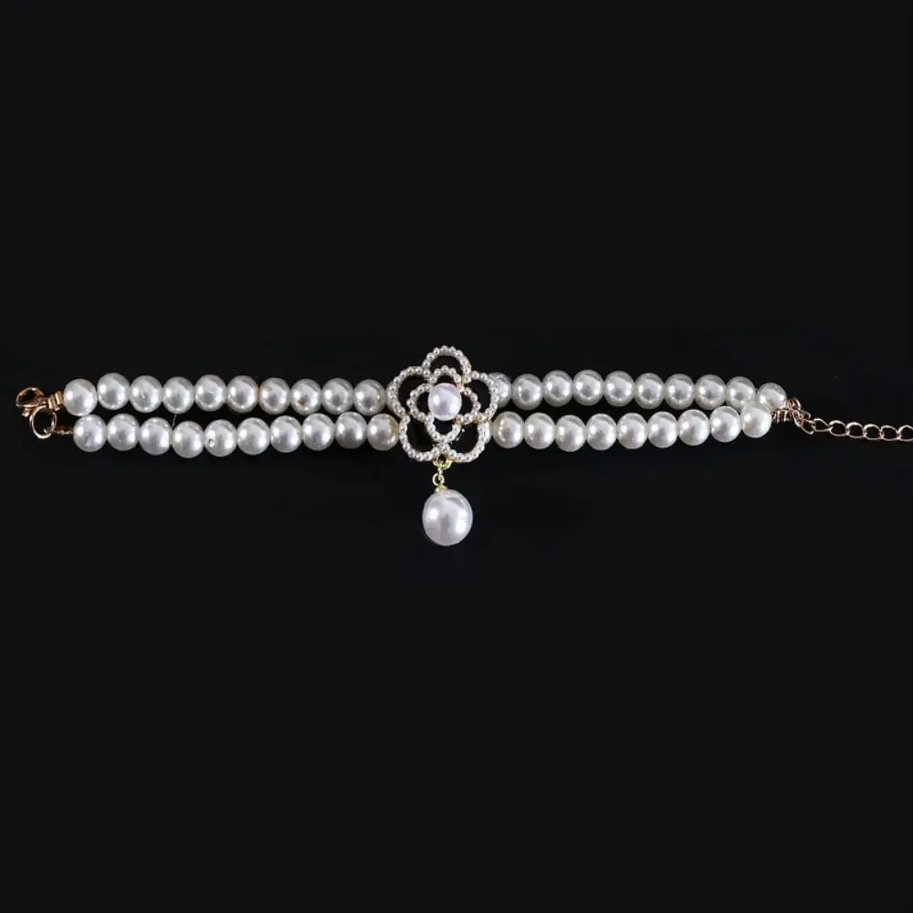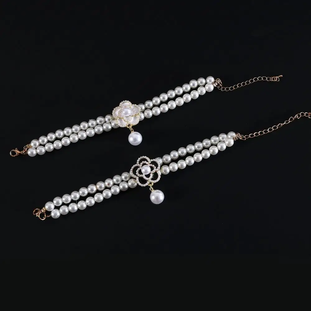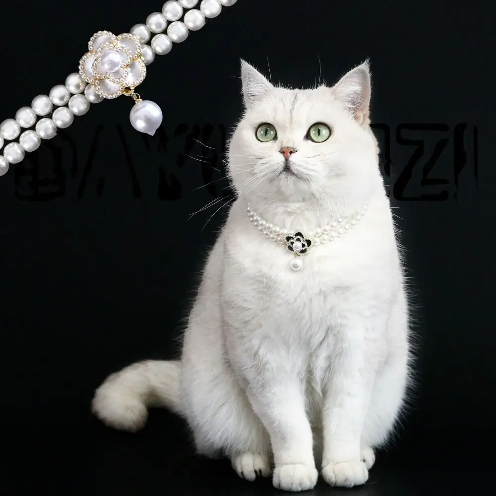Pet Accessories Double Layer Pearl Pet Necklace Sweet Flower Pendant Cat Neck Chain Adjustable Pet Pearl Collar Photograph