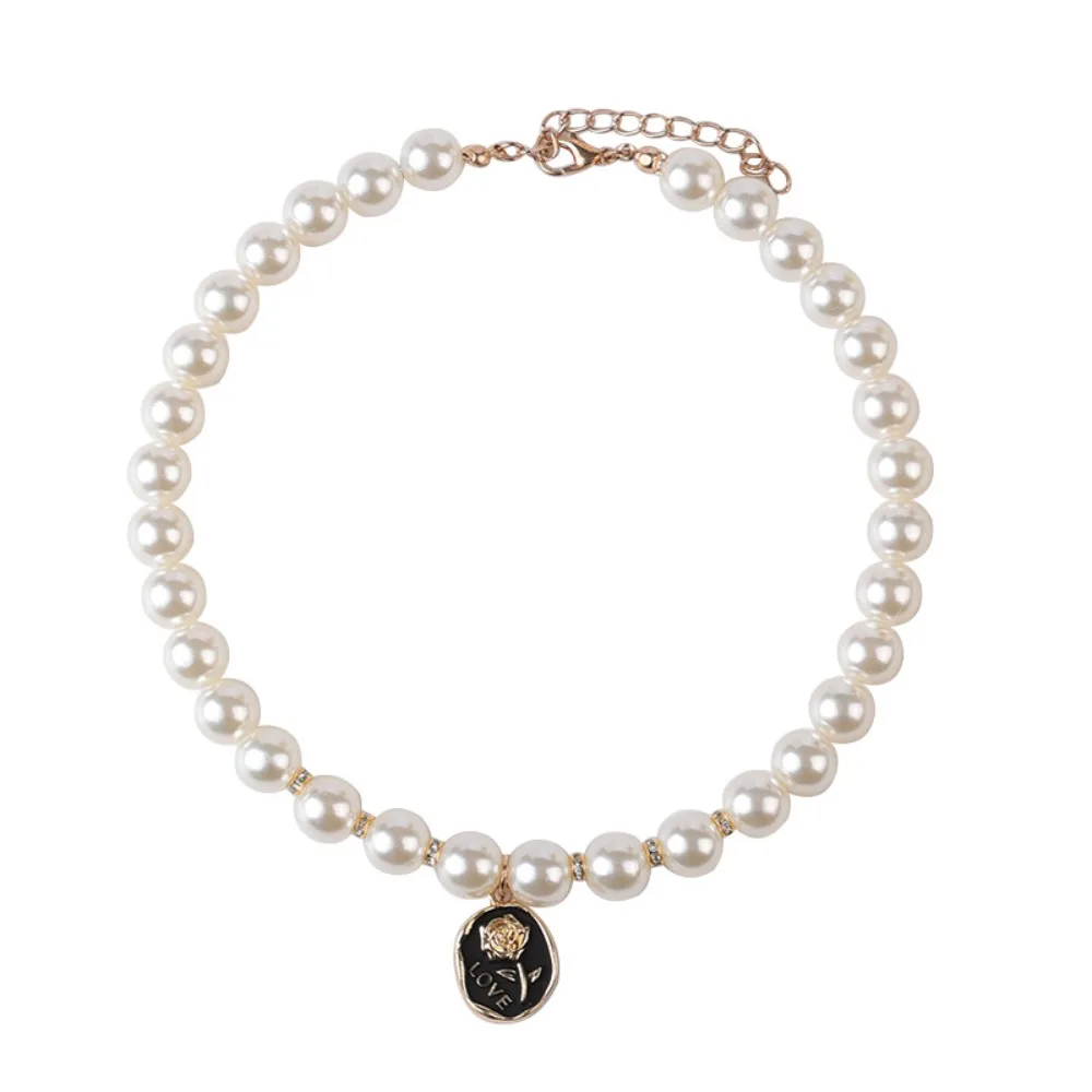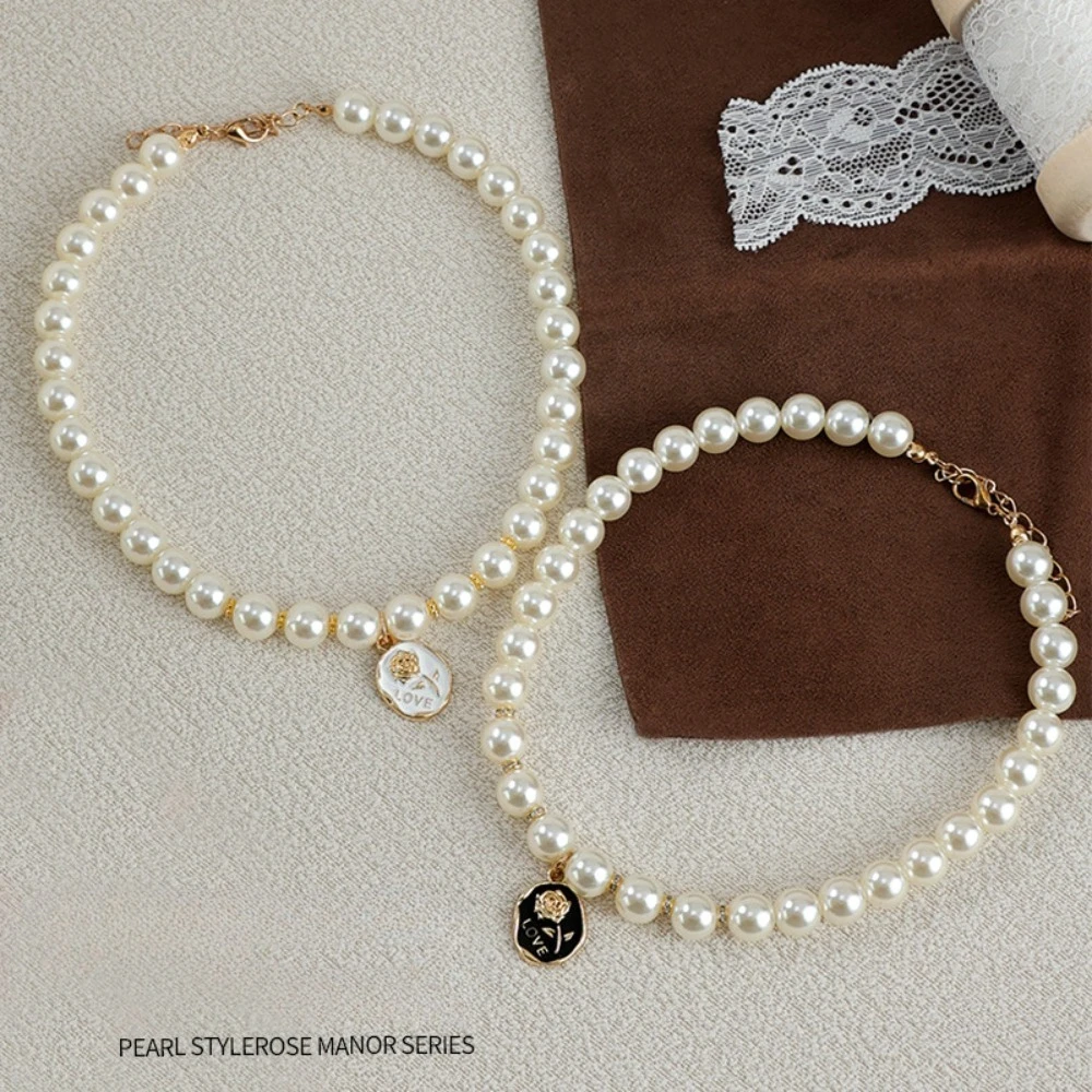 Pet Cat Collars Pearl Rose Pendant Necklace Cat Dog Pearl Collar Pet Pendant Cute High Beauty Retro Decoration Teddy Dog Collar