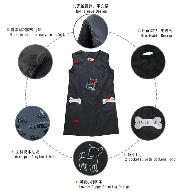 Professional pet grooming apron made from premium soft nylon material, waterproof and breathable.