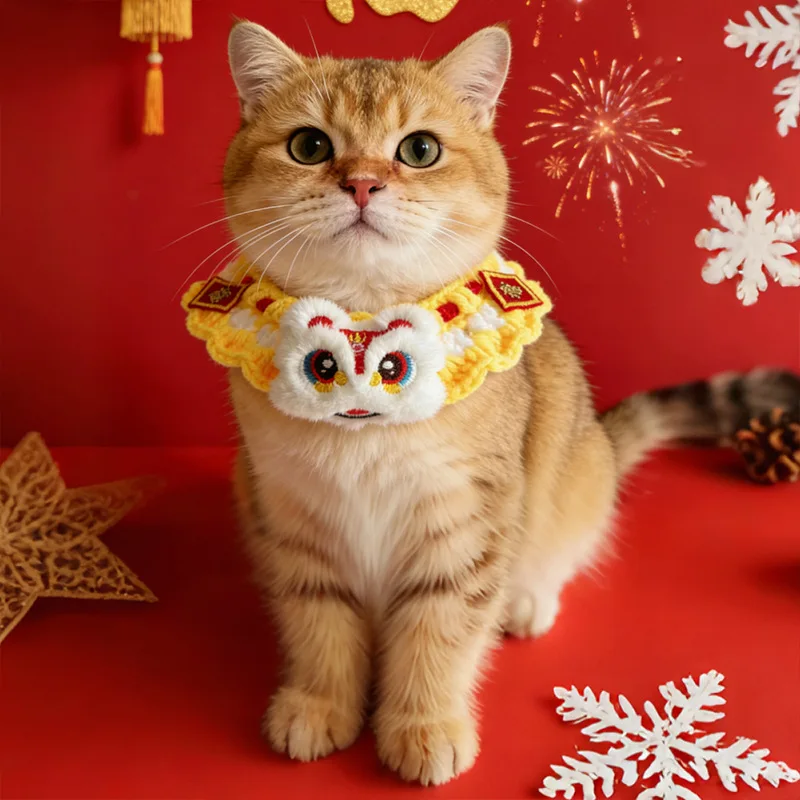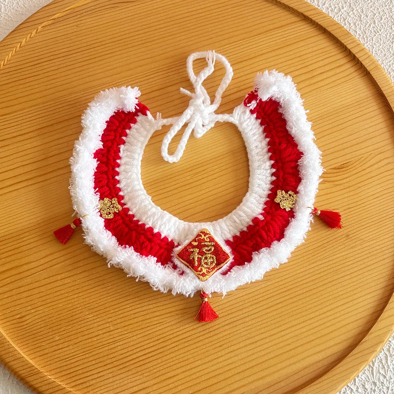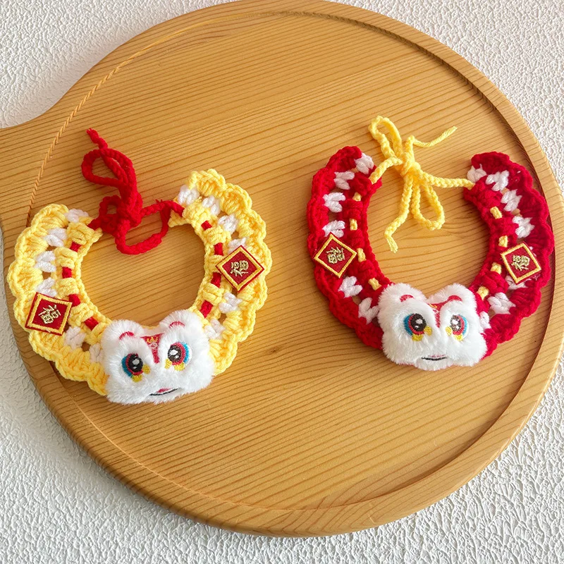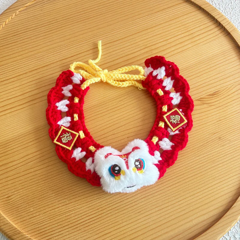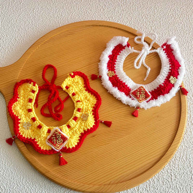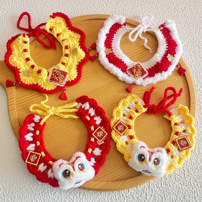 Pet Knitted Scarf for Cat Dog Cartoon Handmade Yarn New Year Festival Costume Collar New Warm Soft Winter Pet Clothing Accessory