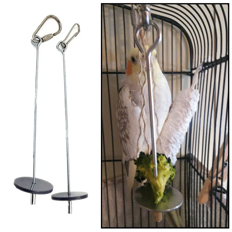 Made of stainless steel, strong and durable.Easy to clean, convenient for you to use multiple times.Good match for the cage.Can be used for fruit forks.Enough space to put food on it.This is also the gift of the parrot’s rich lunch.100% brand new and high quality!