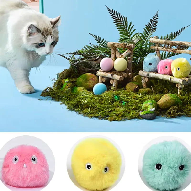 Pet Smart Fun Cat Toy Ball Simulate Birds Frog Sound Catnip Training Toy Interact Teasing Catnip Gravity Plush Cat Ball