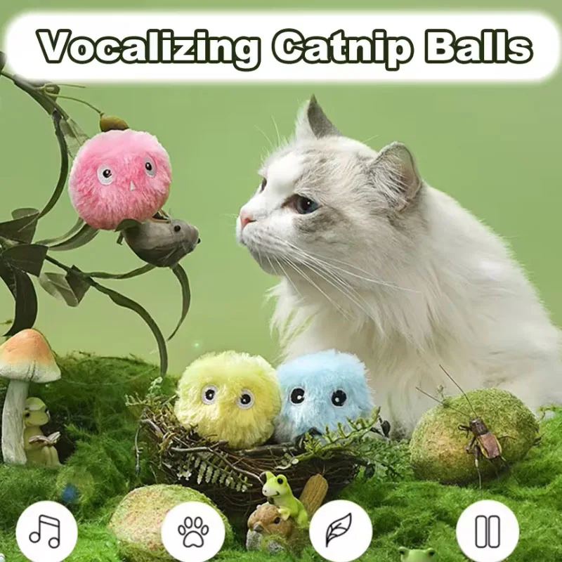 Pet Smart Fun Cat Toy Ball Simulate Birds Frog Sound Electric Catnip Training Toy Interact Teasing Catnip Gravity Plush Cat Ball