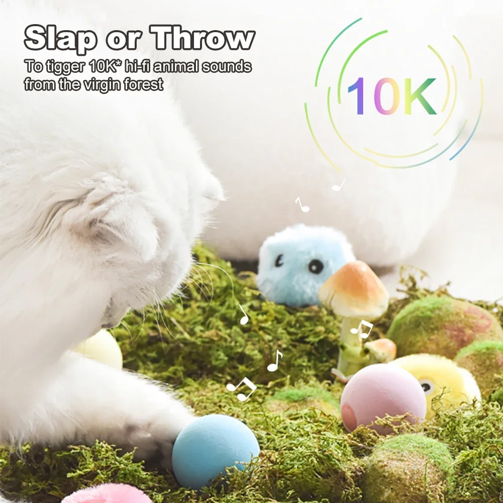 • Smart squeaky toy for cat, when touch the ball, the ball will make nature animal sound.