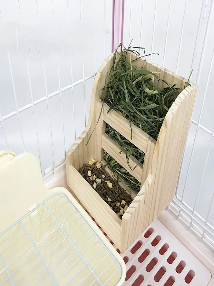 Pet wooden grass rack rabbit food bowl food box 2-in-1 grass rack rabbit guinea pig Chinchillas built