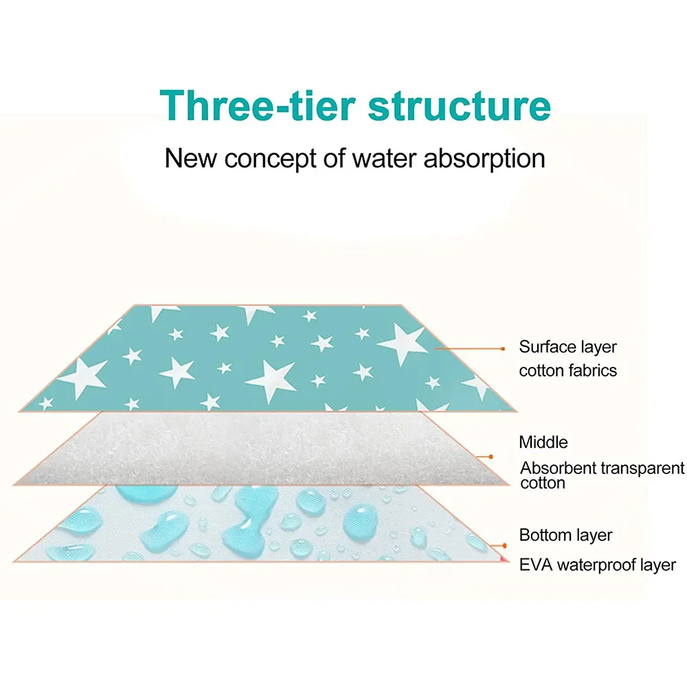 1. Designed with 3 layers, the first layer is soft cloth, the second layer is absorbent cloth, and the third layer is EVA waterproof layer.