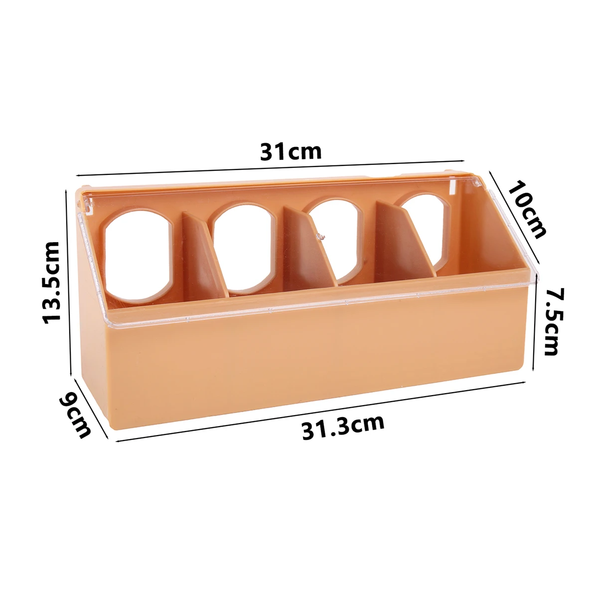 4. The four-grid hanging box can hold 1272 grams (2.6 catties) of pigeon food, which can be eaten by 4 pigeons for one week.