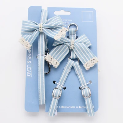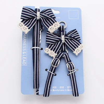 Pink Stripe Dog Collars And Harnesses Cotton Bows Girl Boy Pet Leash Set Outdoor Walking For Pitbull Chihuahua S M Accessories