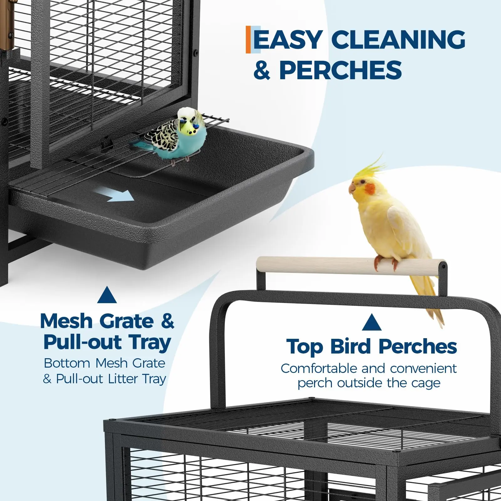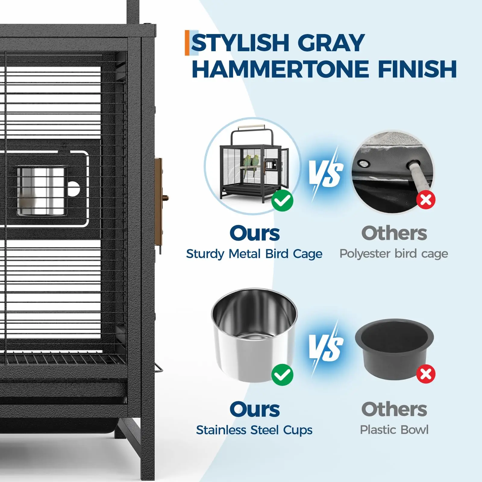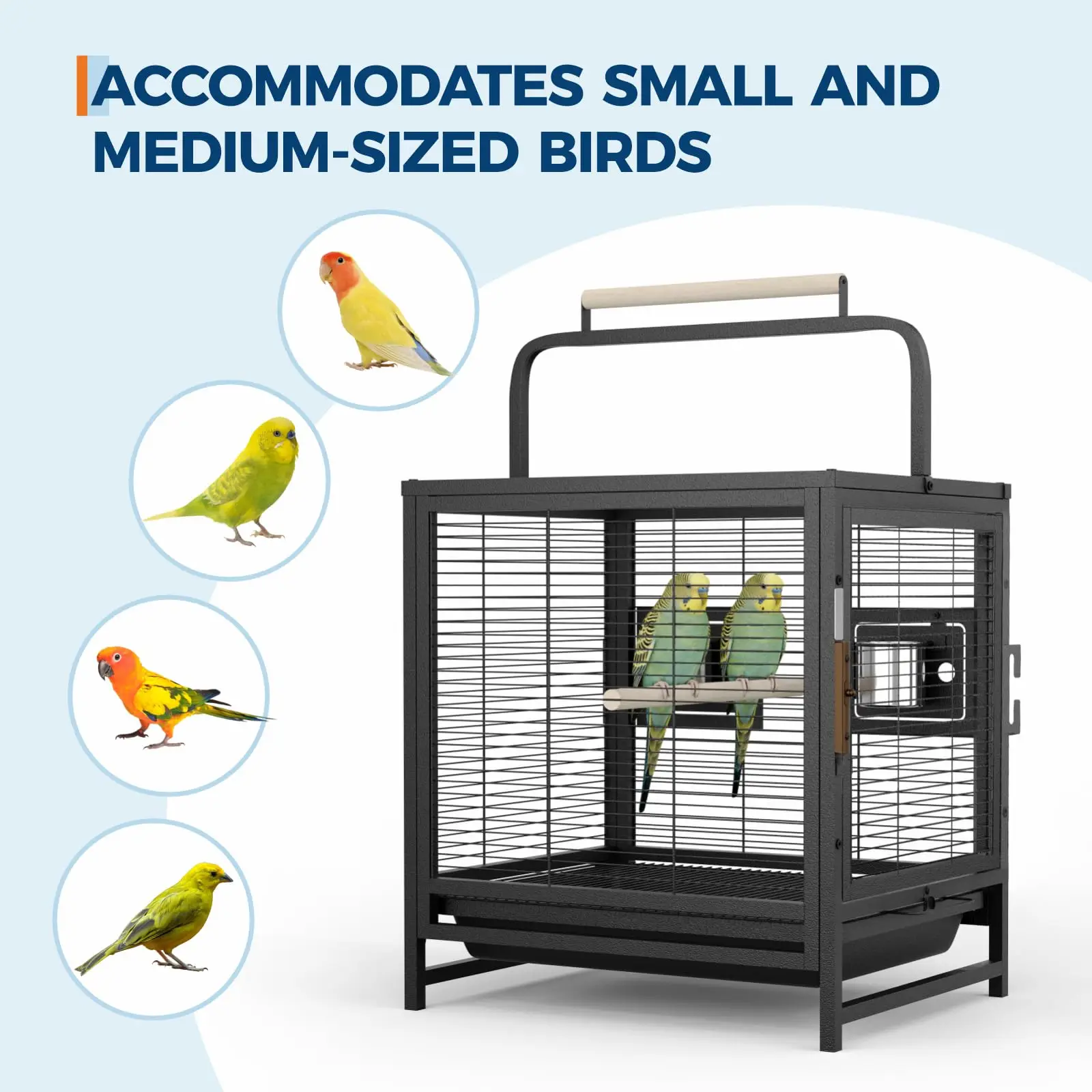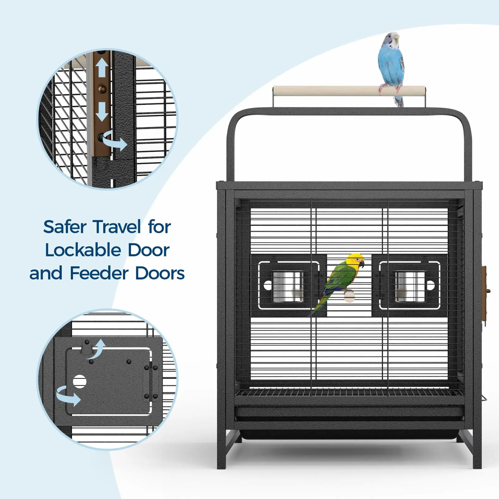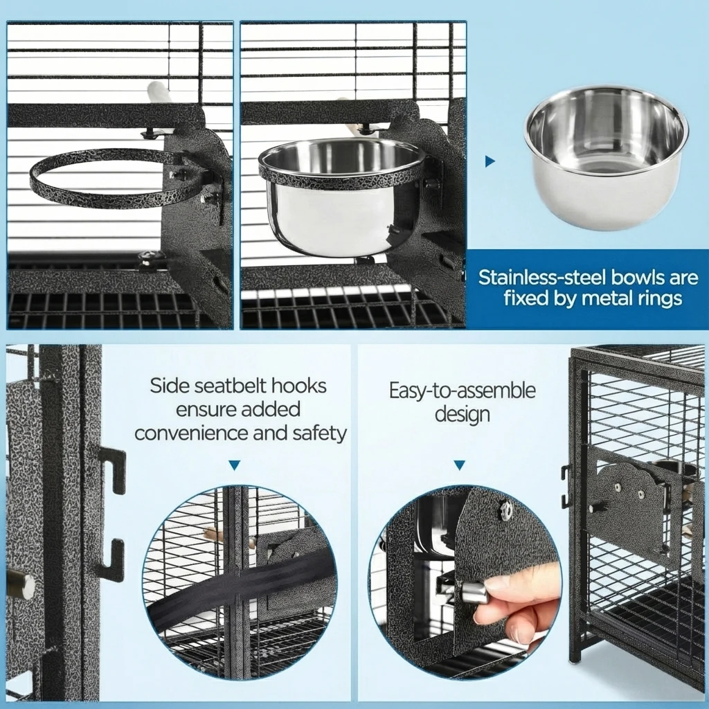 — Superior carbon steel bird cage with rust-resistant finish for long-lasting durability, ideal for daily use and travel.