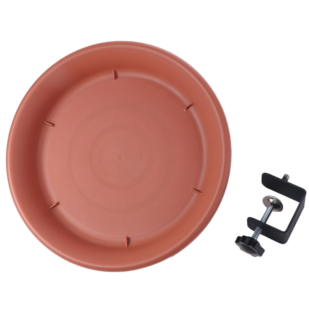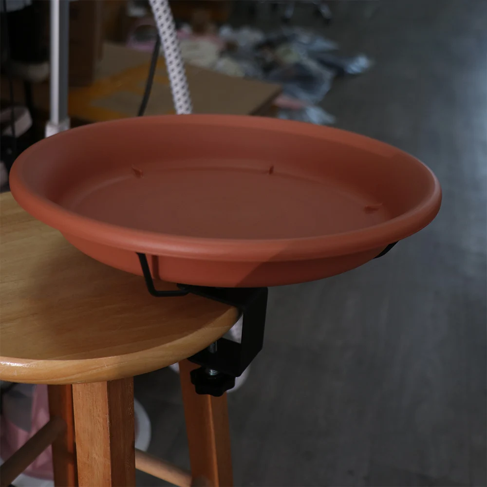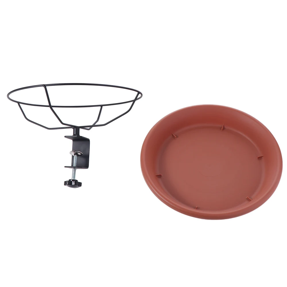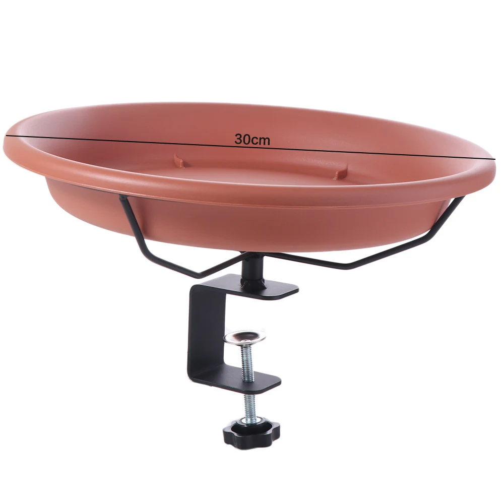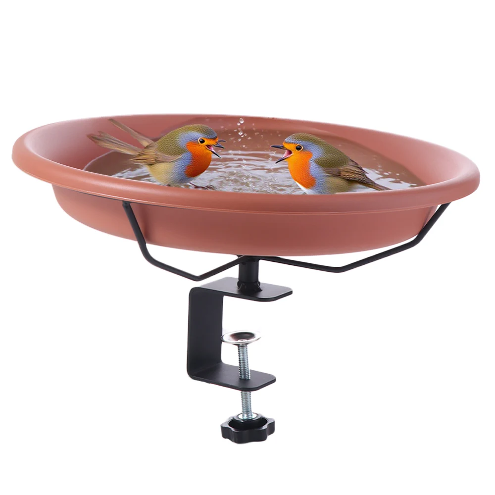 Practical Adjustable Deck Railing Bird Bath Plastic Removable Bird Bath Feeder Brown Deck Mounted Bird Bath for Garden