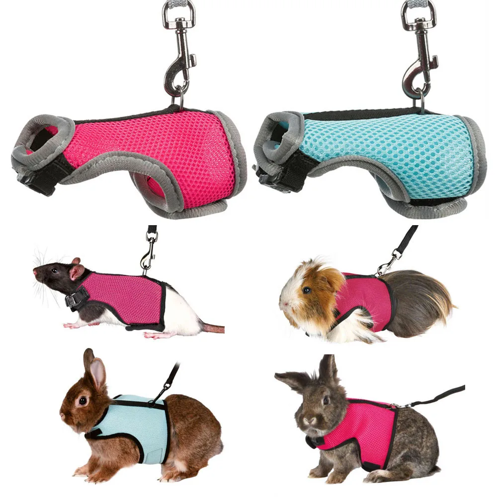 Rabbit Harness Leash Set Adjustable Soft Mesh Harness with Leash Rat Vest Leashes Set Small Pet Chest Strap Portable Elastic