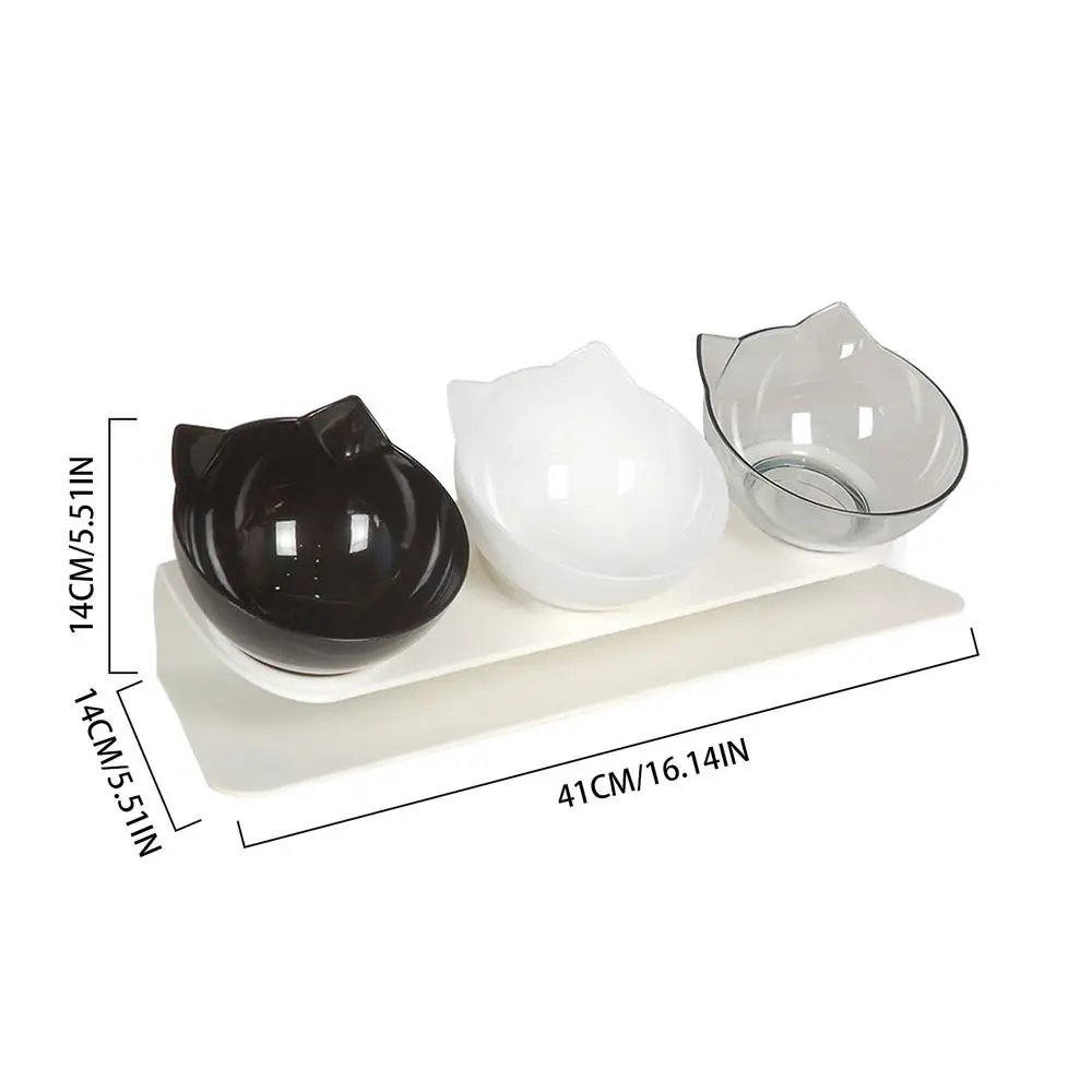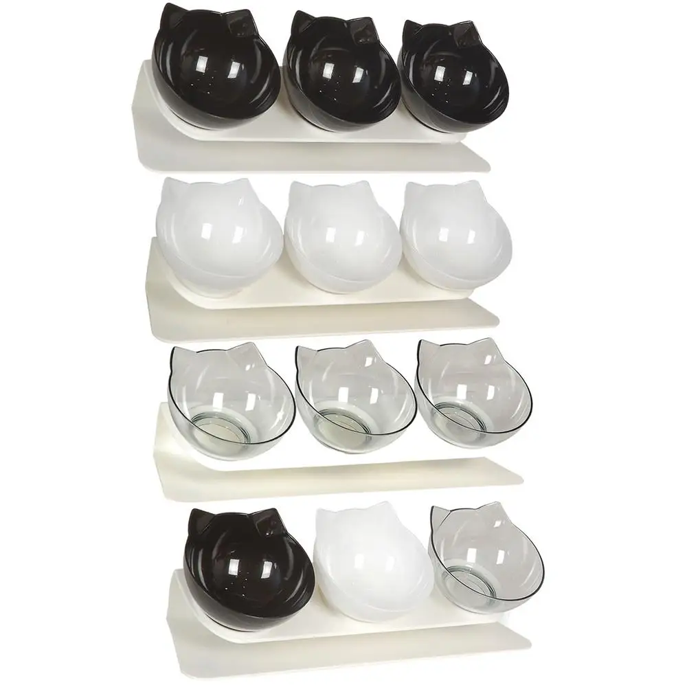 2.Comfortable Eating Position: The elevated cat bowls are designed with a 15-degree tilt angle that reduces neck pressure and allows your cats to eat comfortably. The raised cat bowl set is in line with cats' physiological characteristics and prevents food from spilling.