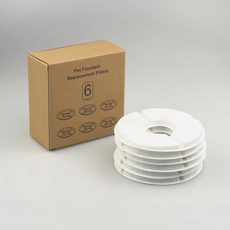 💧 How to Use Pet Water Fountain Filters: Note: To prevent the activated carbon dust from shedding into water. Please soak the cat water filters in water for 2 minutes and rinse it thoroughly under running water before using it. Then install the pet fountain filters into the cat fountain. Suggested to replace it 2-4 weeks to keep the water clean and fresh. Filters Size is 5.1 * 5.1 inches, the diameter of inner circle is 1.53 inches.