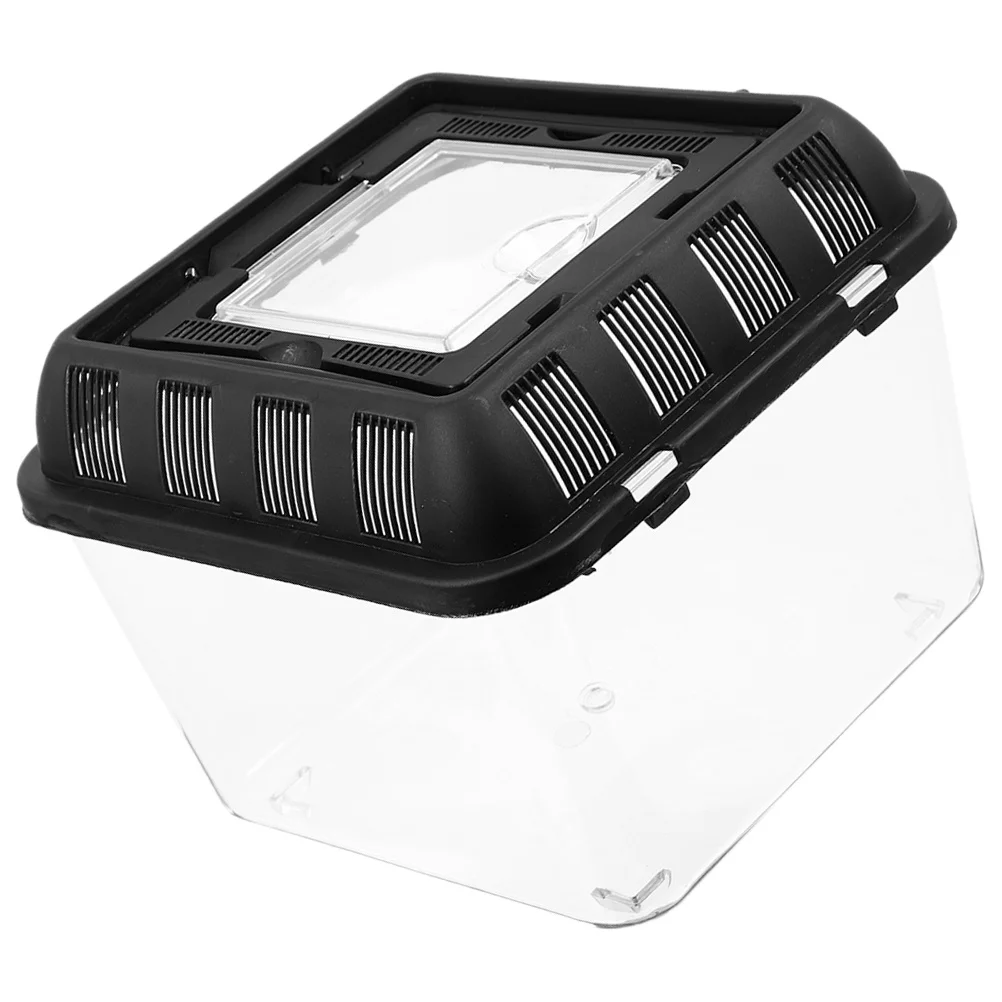 Reptile Breeding Box Black Plastic Turtle Transport Durable Lightweight Ventilation Hole Feeding Cage Storage Container Anti