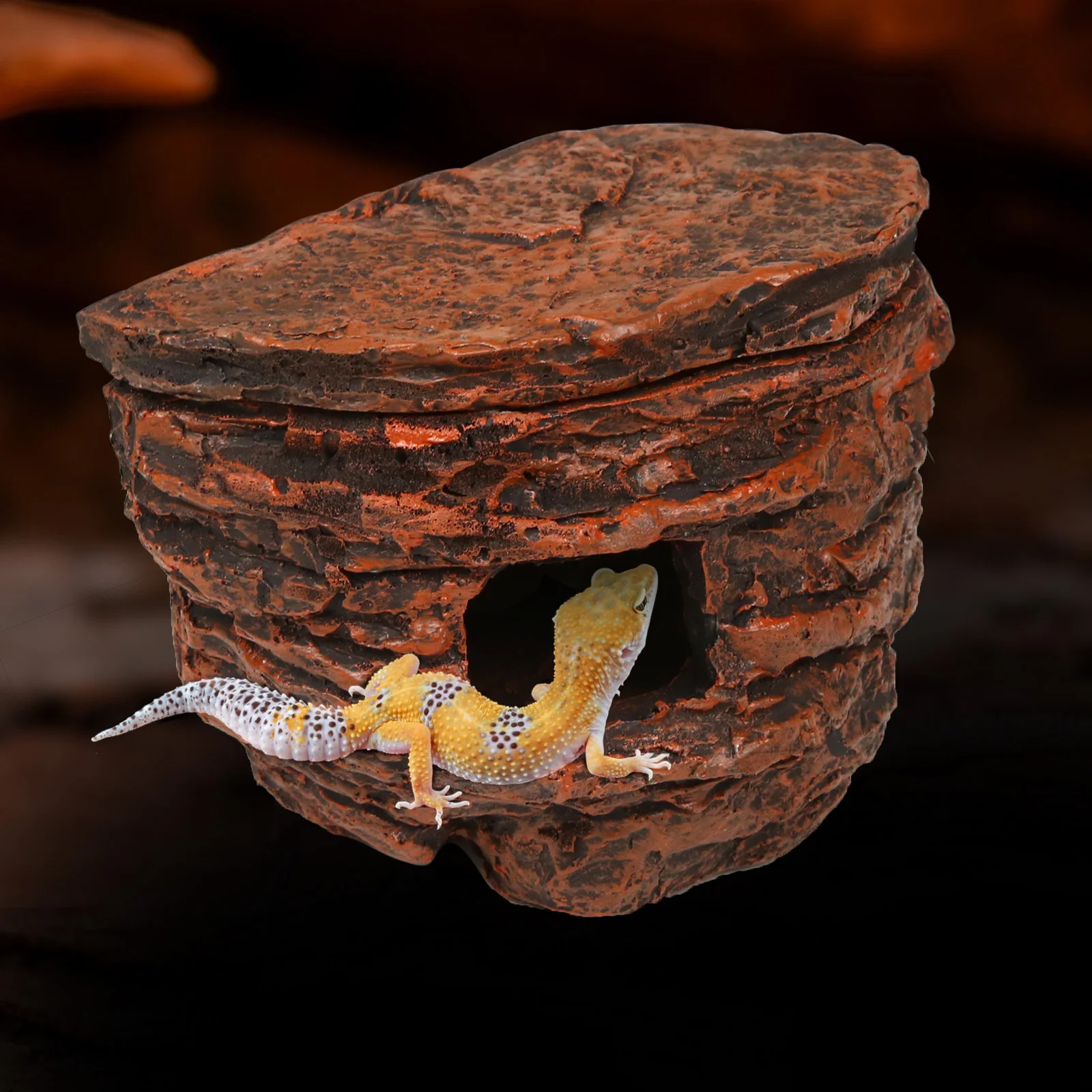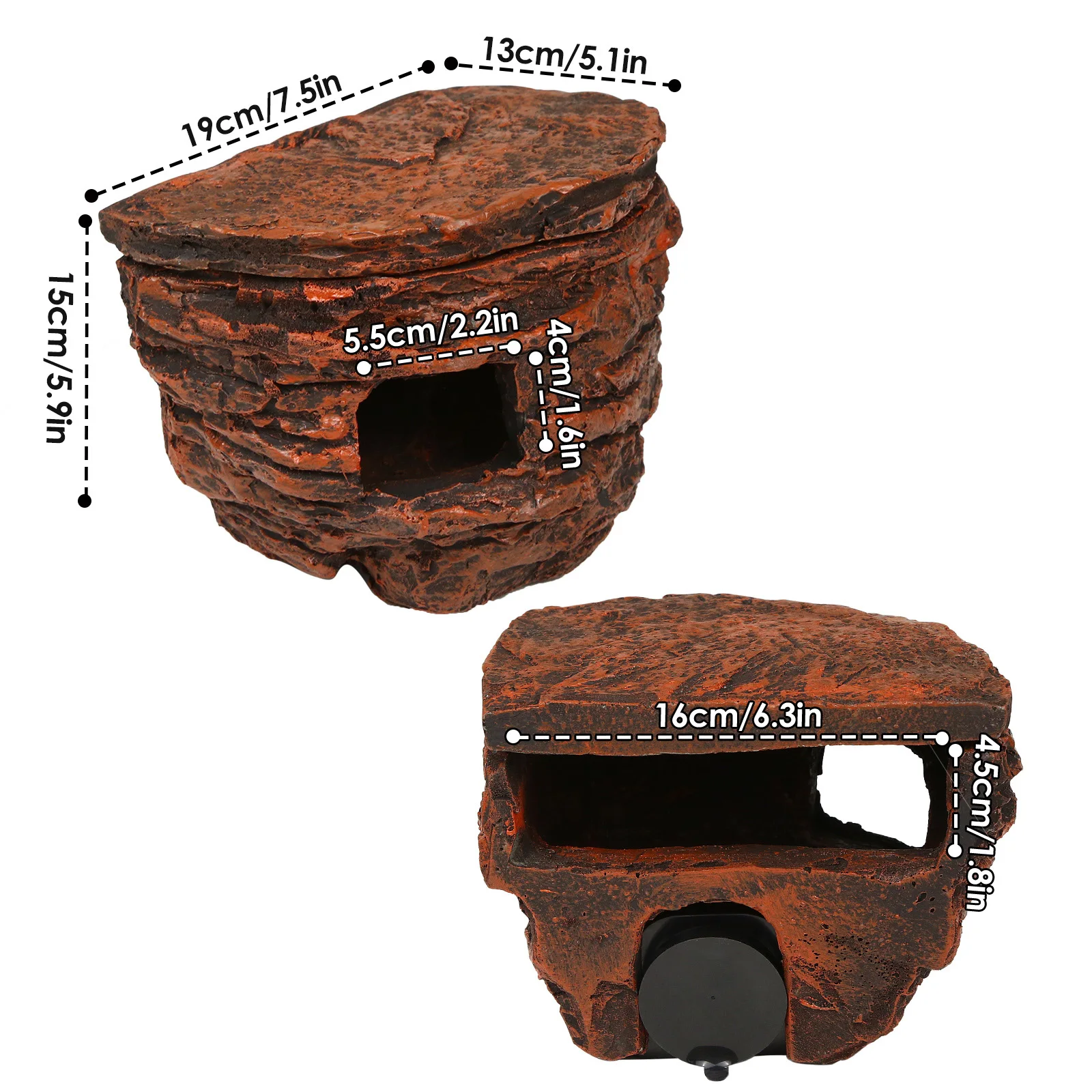 Reptile Rock Cave Hideout for Geckos, Chameleons, Snakes-Terrarium Decor with Suction Cups, Lizard Shelter, Glass Tank Accessory