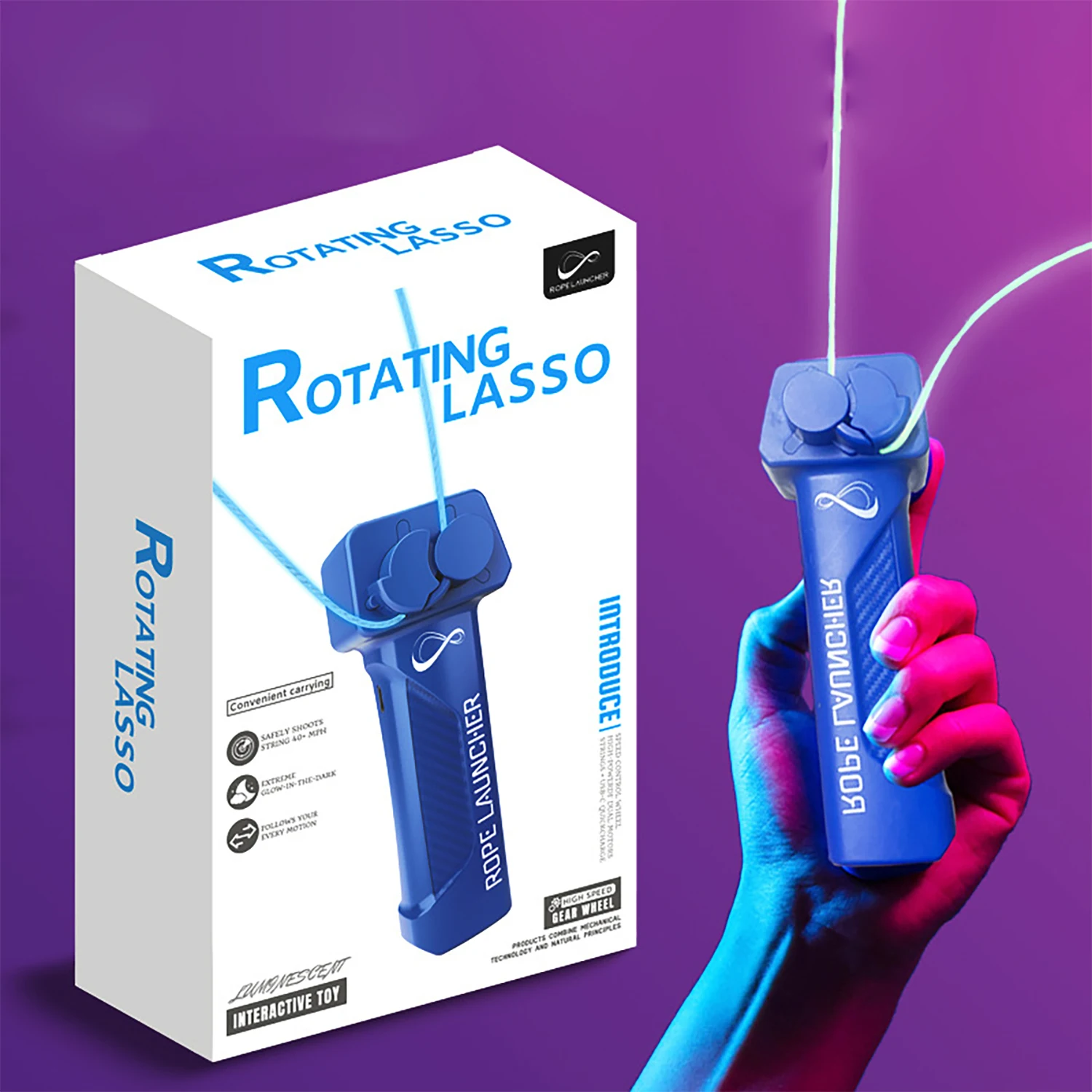 Rope launcher electric night light cat teasing yarn decompression thruster rotating loop lasso creative shooting rope toy