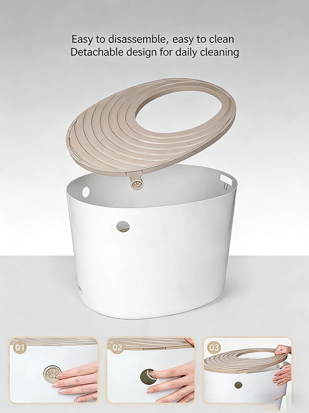 4.Convenient hanging buckle design, the lid removed when cleaning the litter can be hung on the edge of the litter box, and the humanized design is more convenient to use.