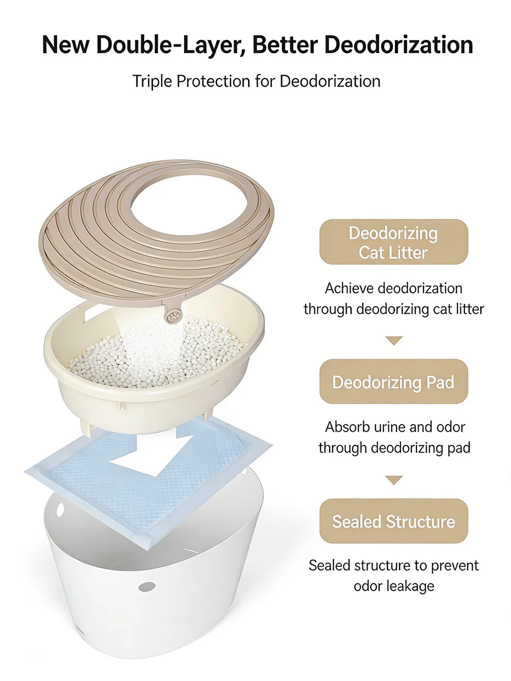 2.The design of the top cover leaking sand hole When the cat jumps out of the litter box, the cat litter taken out is recycled to the litter box through the leak hole.