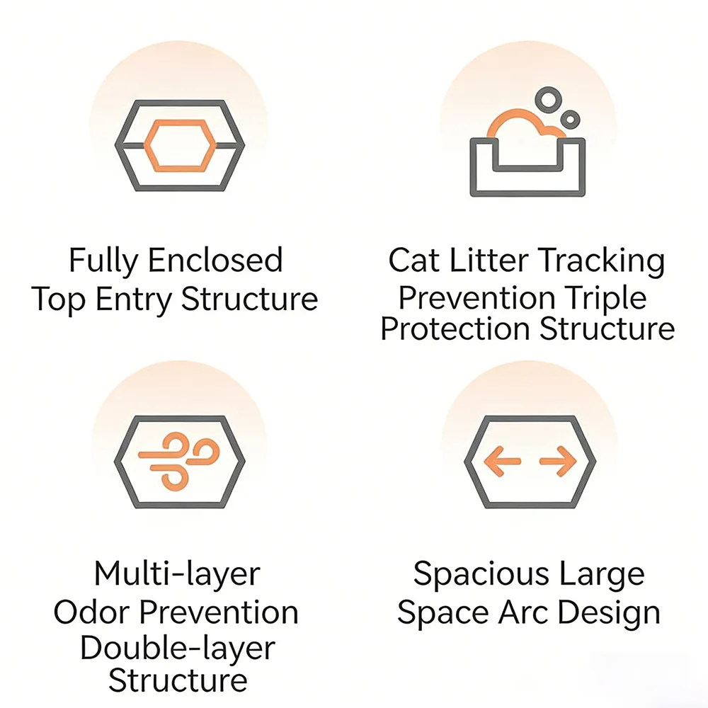1.Semi-enclosed cat bedpan, large space, all-round cleaning, very convenient.