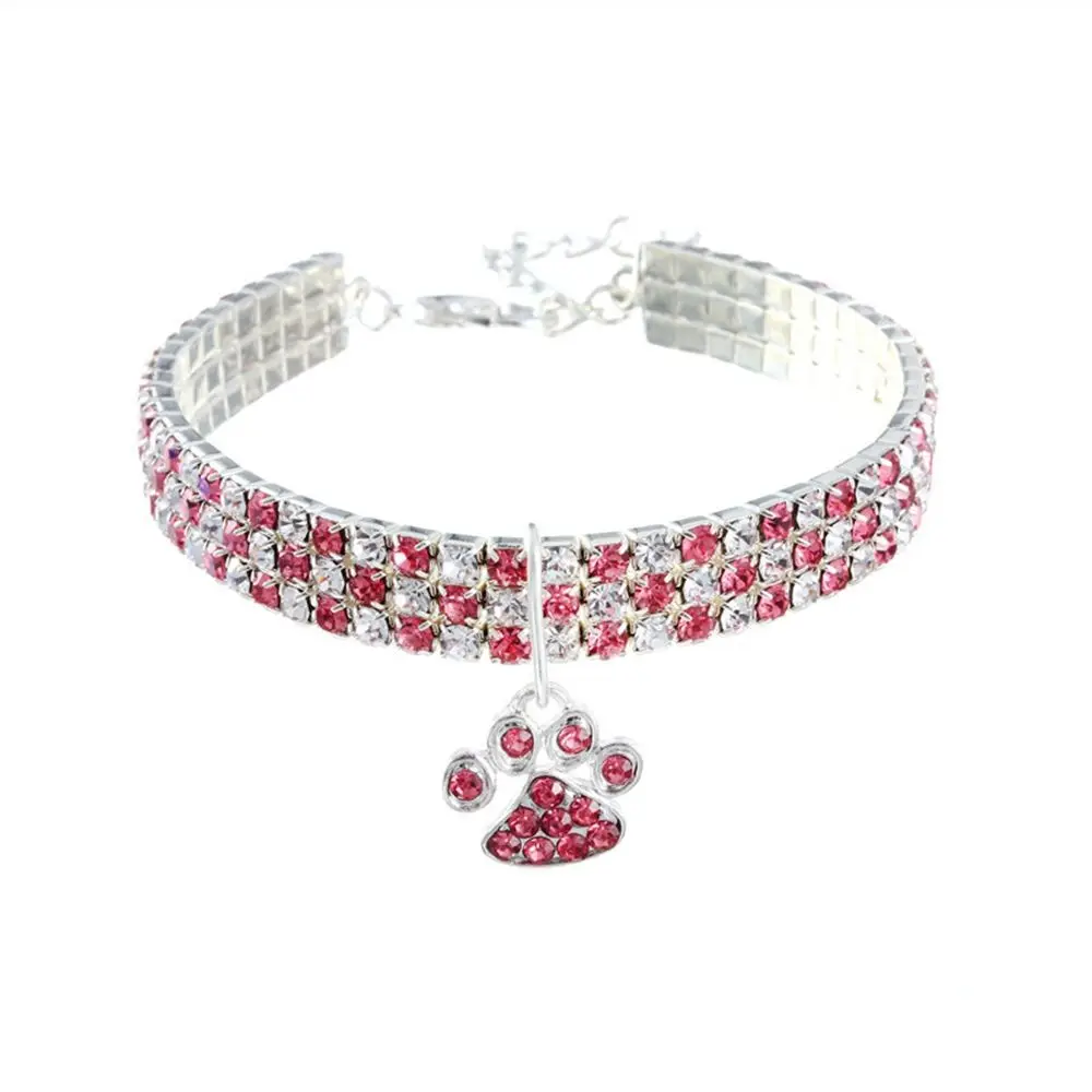 Shiny Crystal Elastic Cats Footprints Jewelry Kitten Collar for Small Dog Cat Collar Dog Collars Pet Supplies Pet Pendant