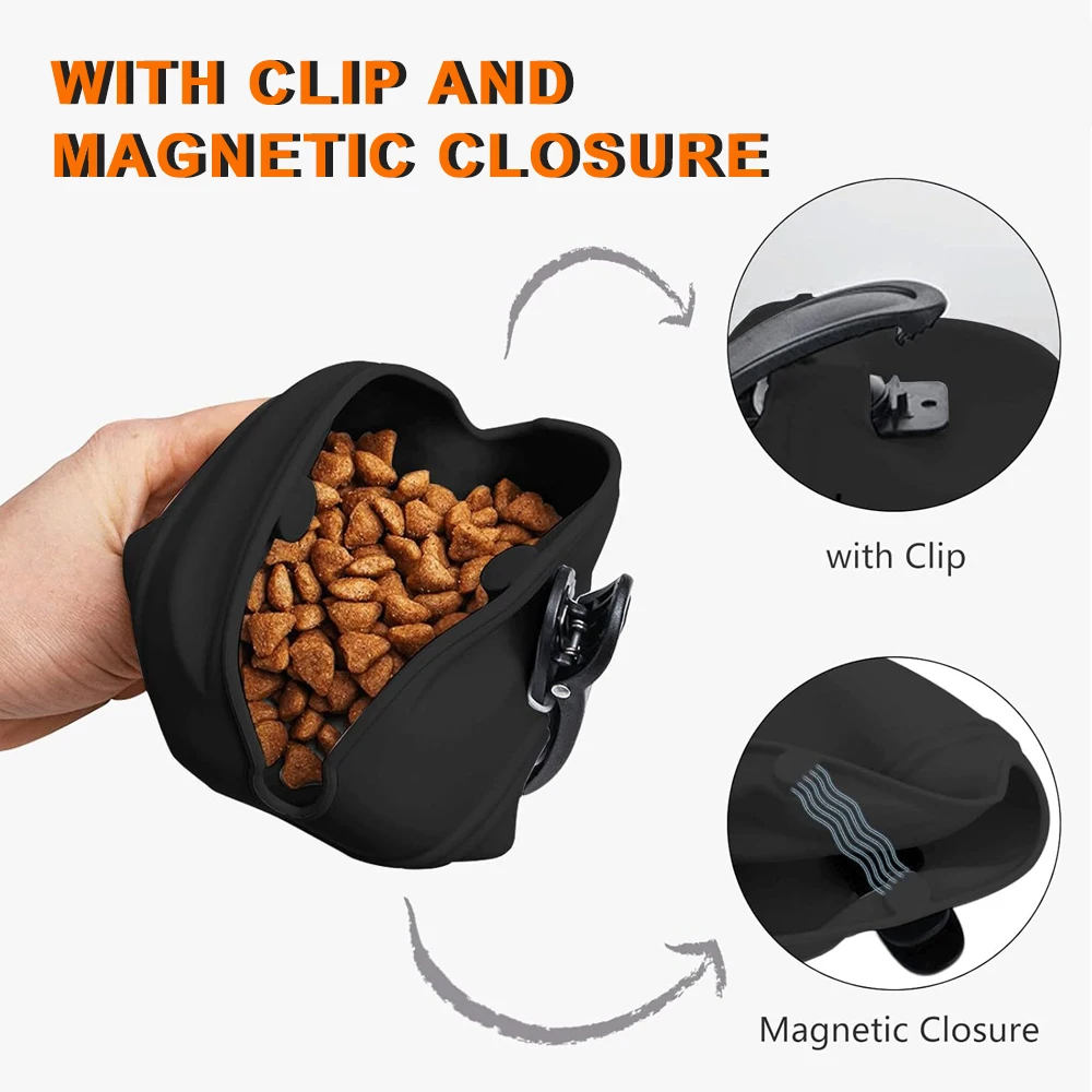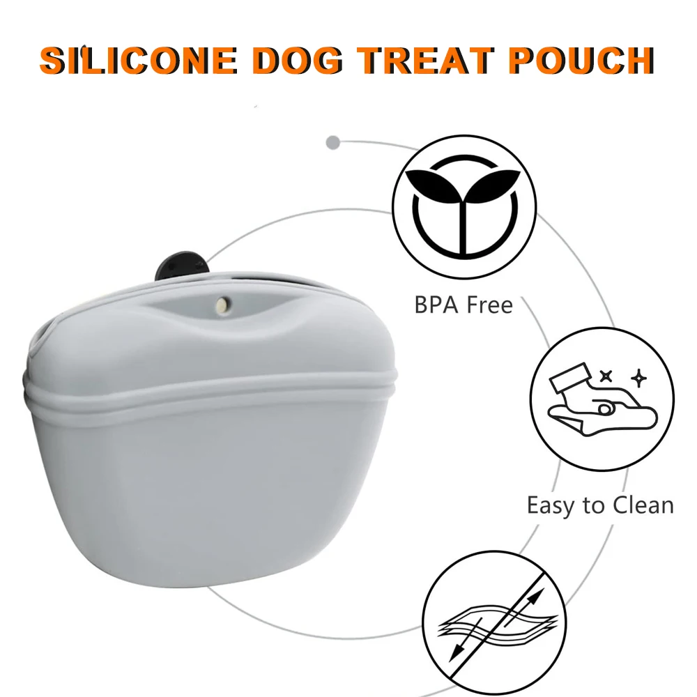 Silicone Dog Treat Pouch-Small Training Bag-Portable Dog Treat Bag for Leash with Magnetic Closure and Waist Clip airtight seale