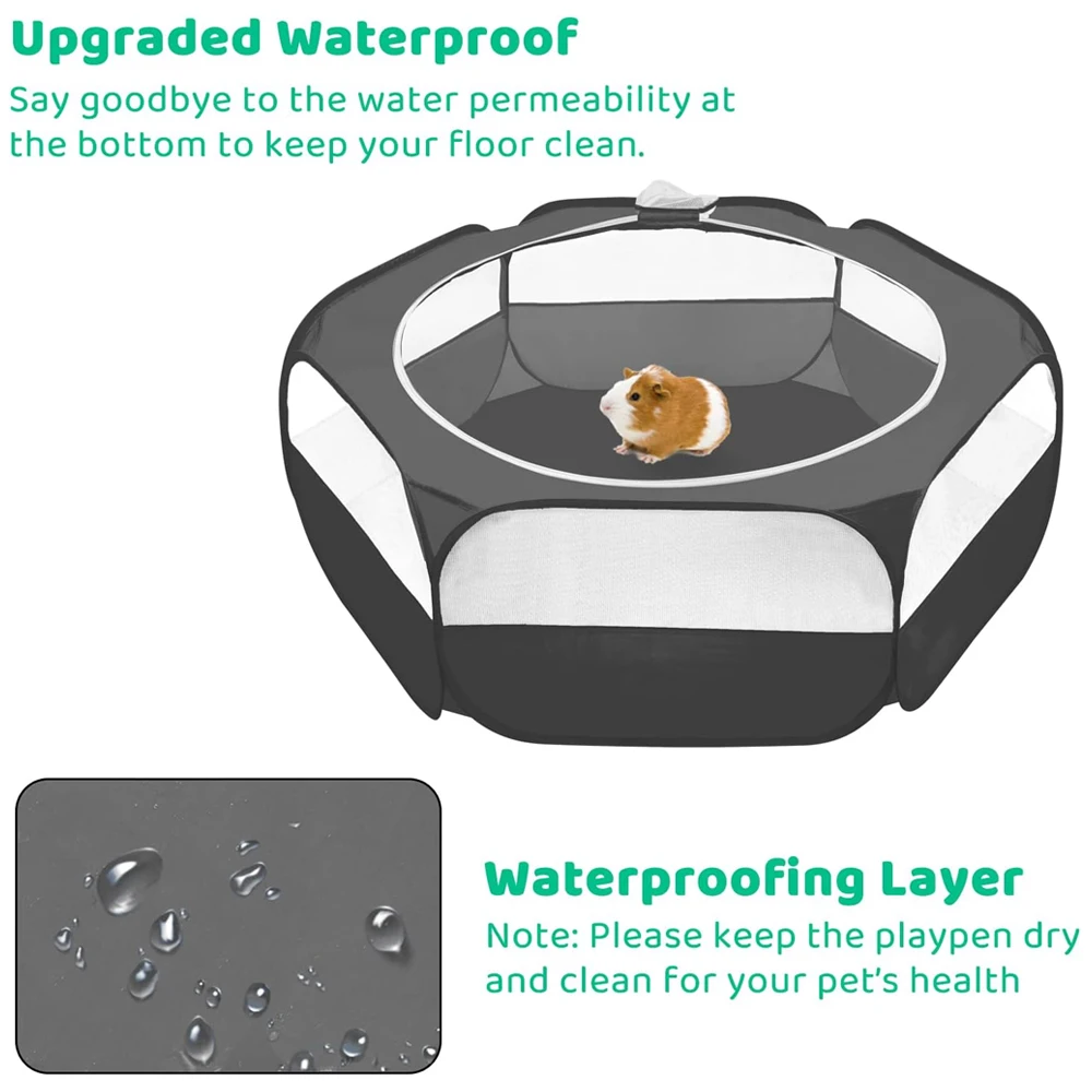 Made of 210D polyester taffeta, this small animal playpen enclosure effectively prevents urine leakage, keeping floors and surroundings dry and clean.