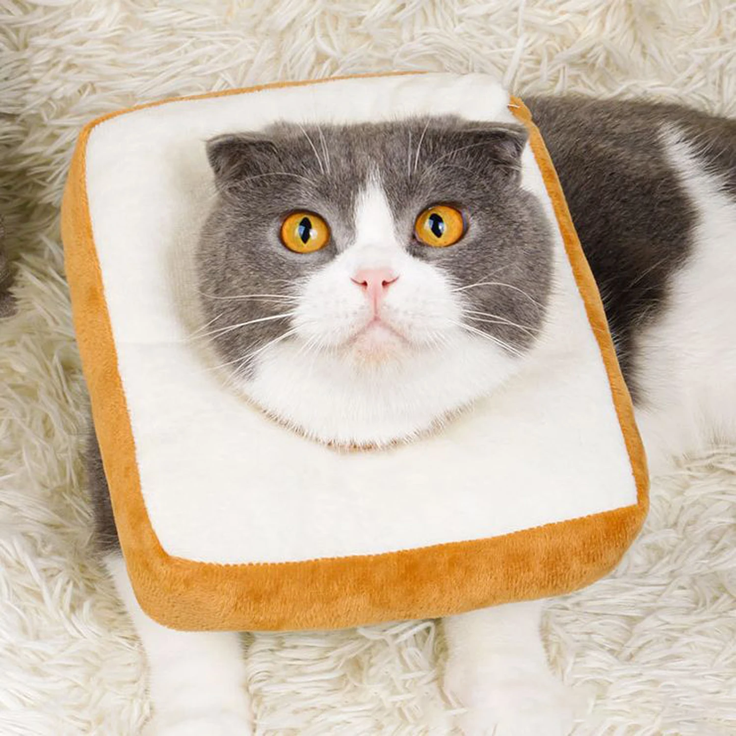 😺Design: this is a different recovery collar, adopting the funny simulation bread-shaped design to make your pets more attractive.