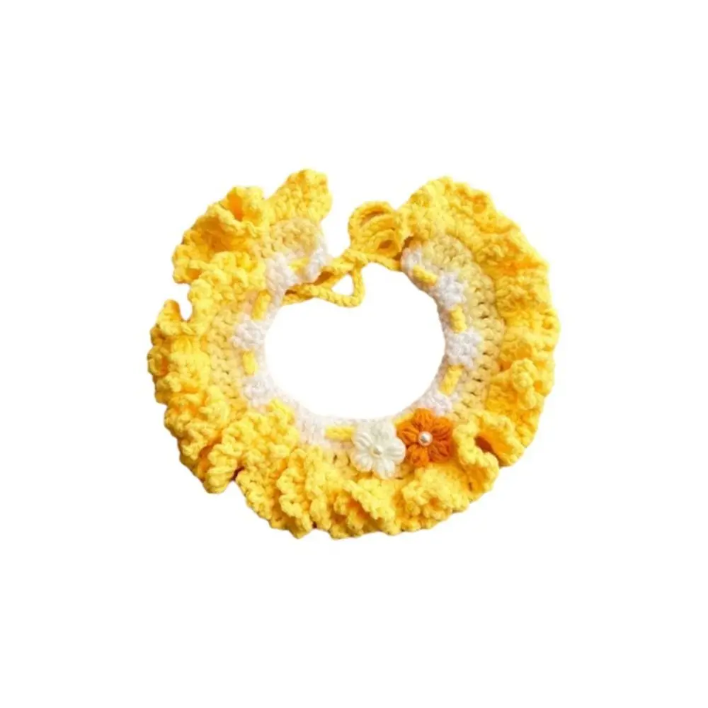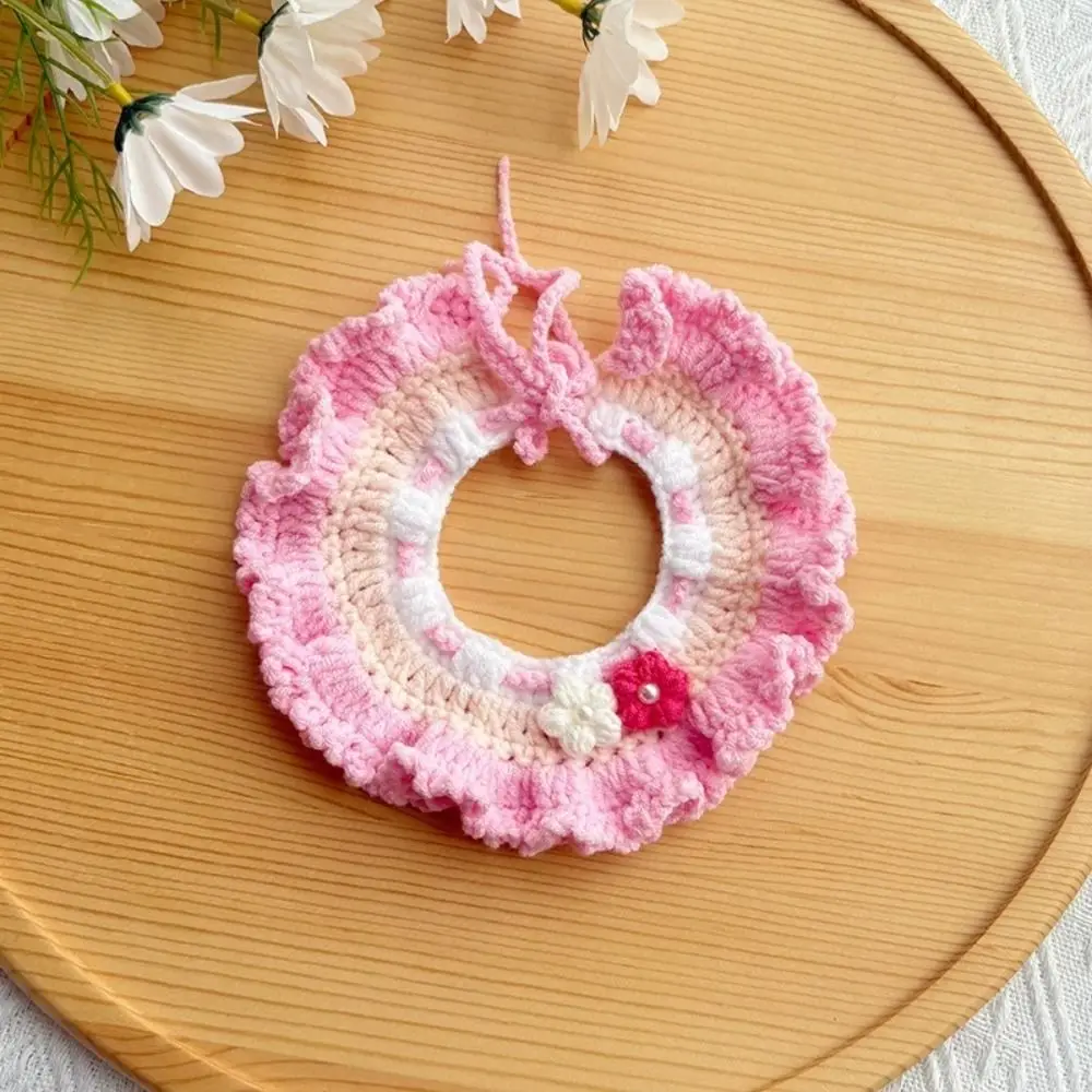 Stylish Flowers Pendant Pet Cat Necklaces Hand-knitted Adjustable Cozy Puppy Collar Cute Saliva Towel Daily Use