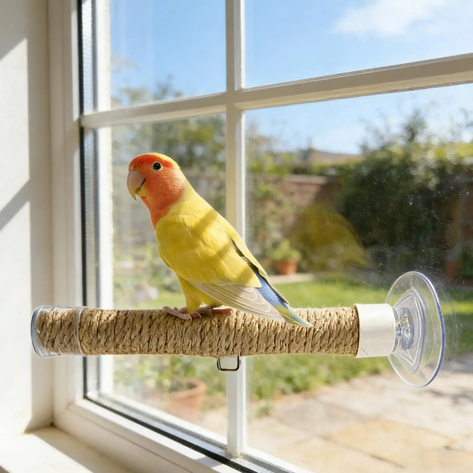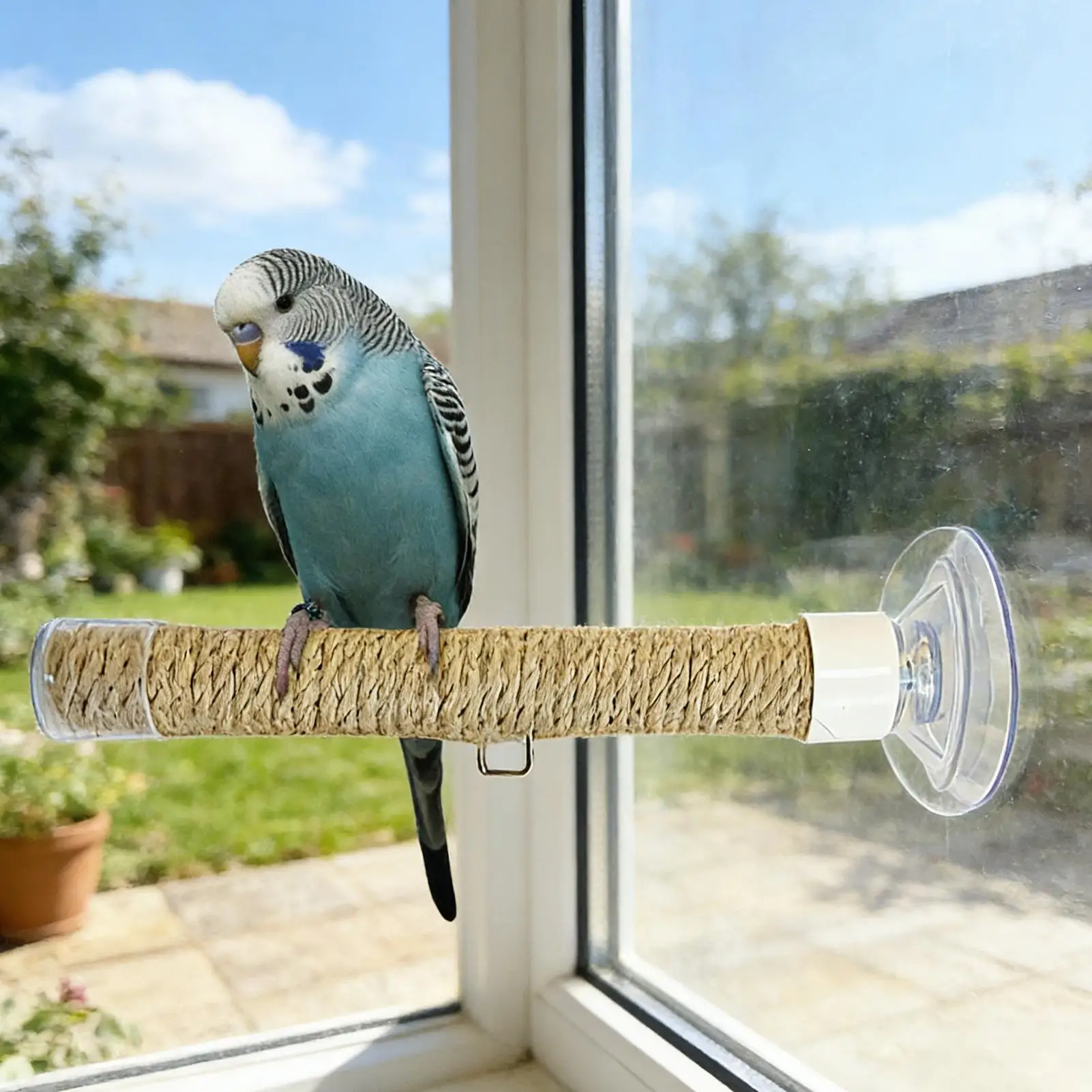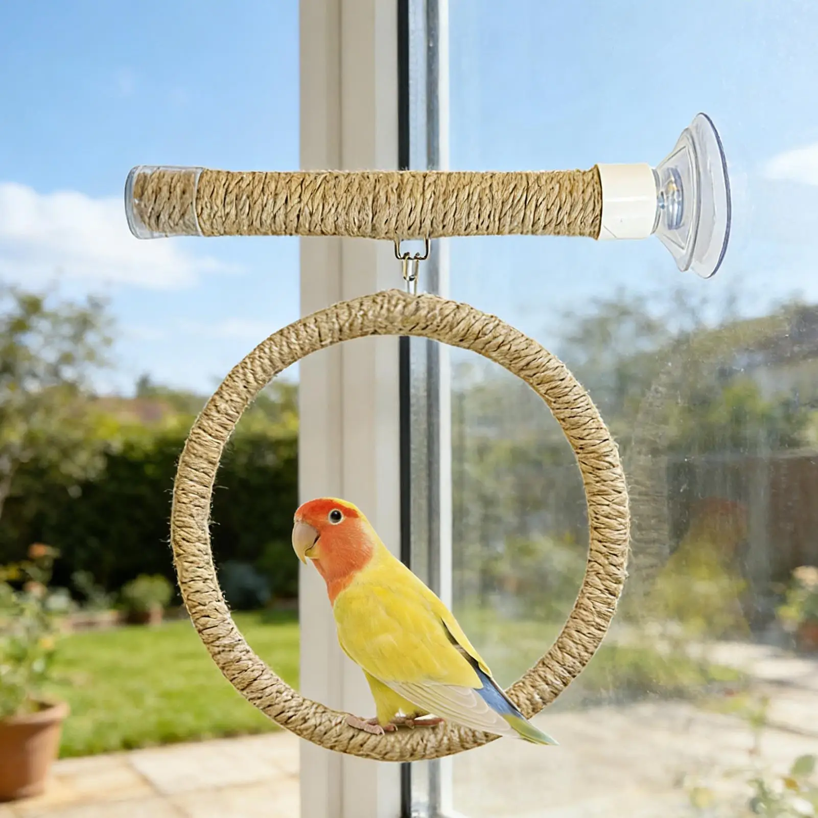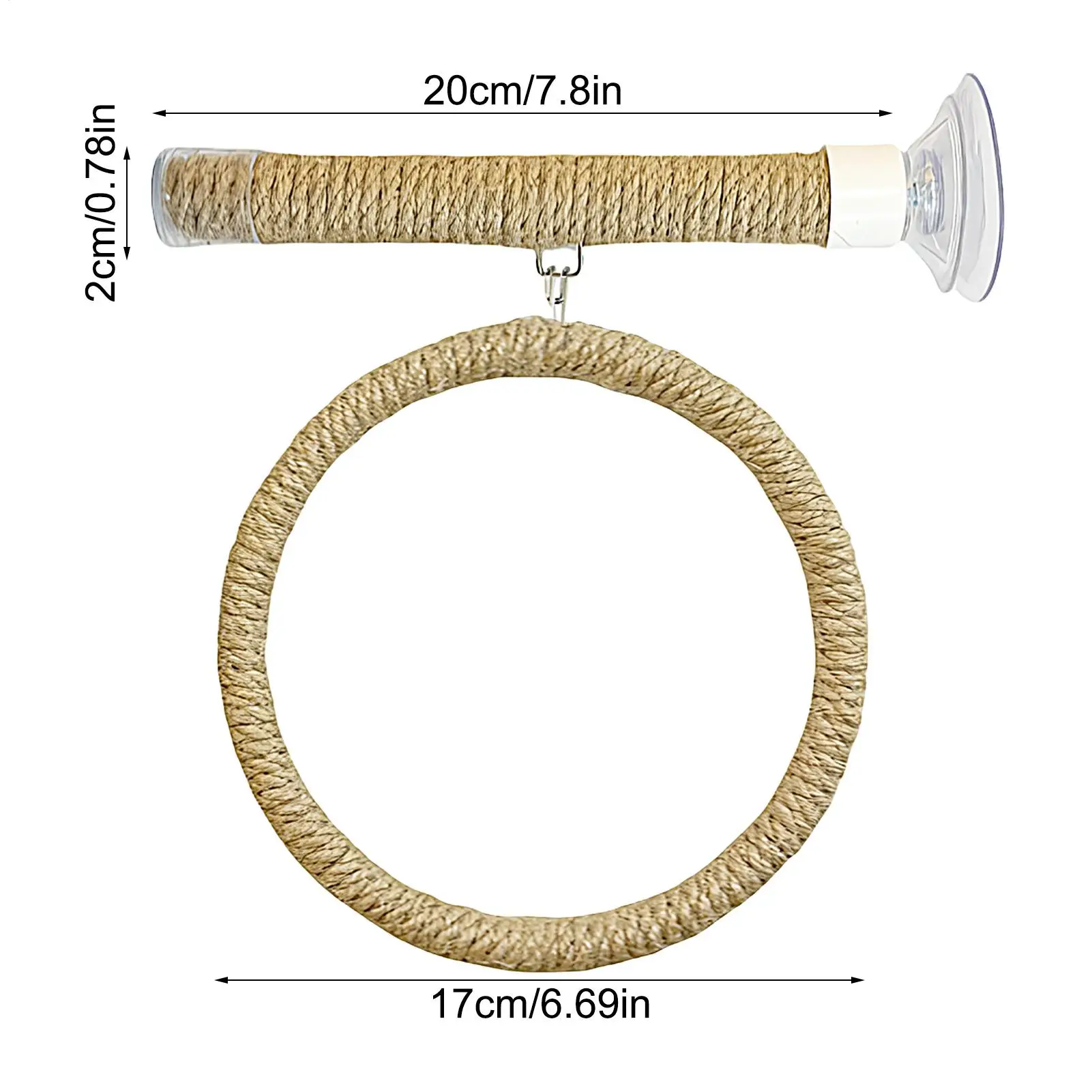 2.Natural Grip Support: Designed with durable jute rope, the suction cup bird perch ensures safe and textured gripping surfaces, promoting proper beak and claw maintenance while enhancing comfort during indoor bird activities