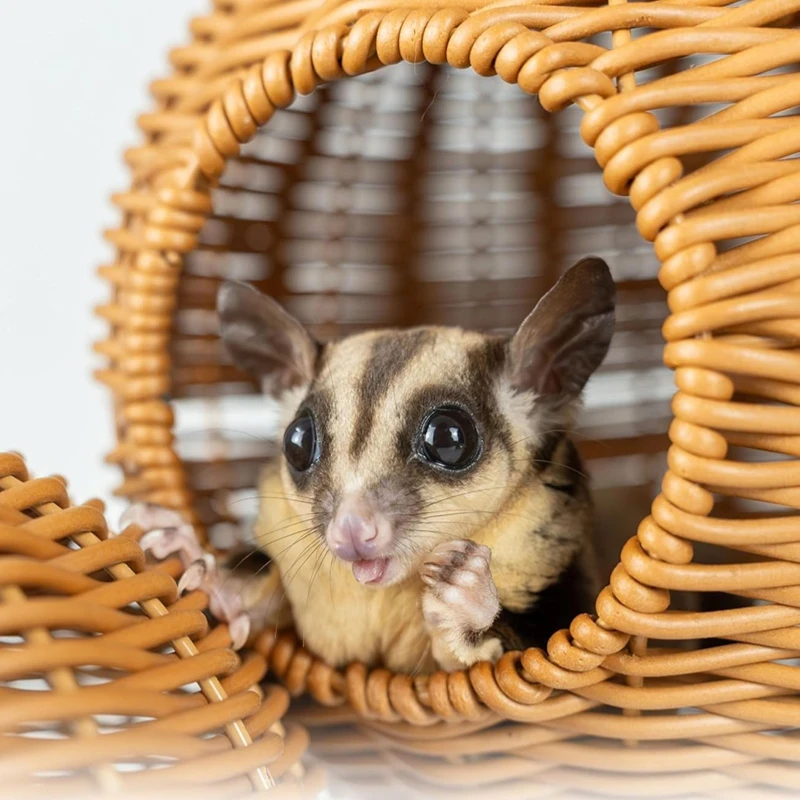 Sugar Glider Pouch Pet Glider Cage Sleep Bag for Small Animals Squirrels Marmosets Rats Hamsters Metal Frame PP Rattan Durable