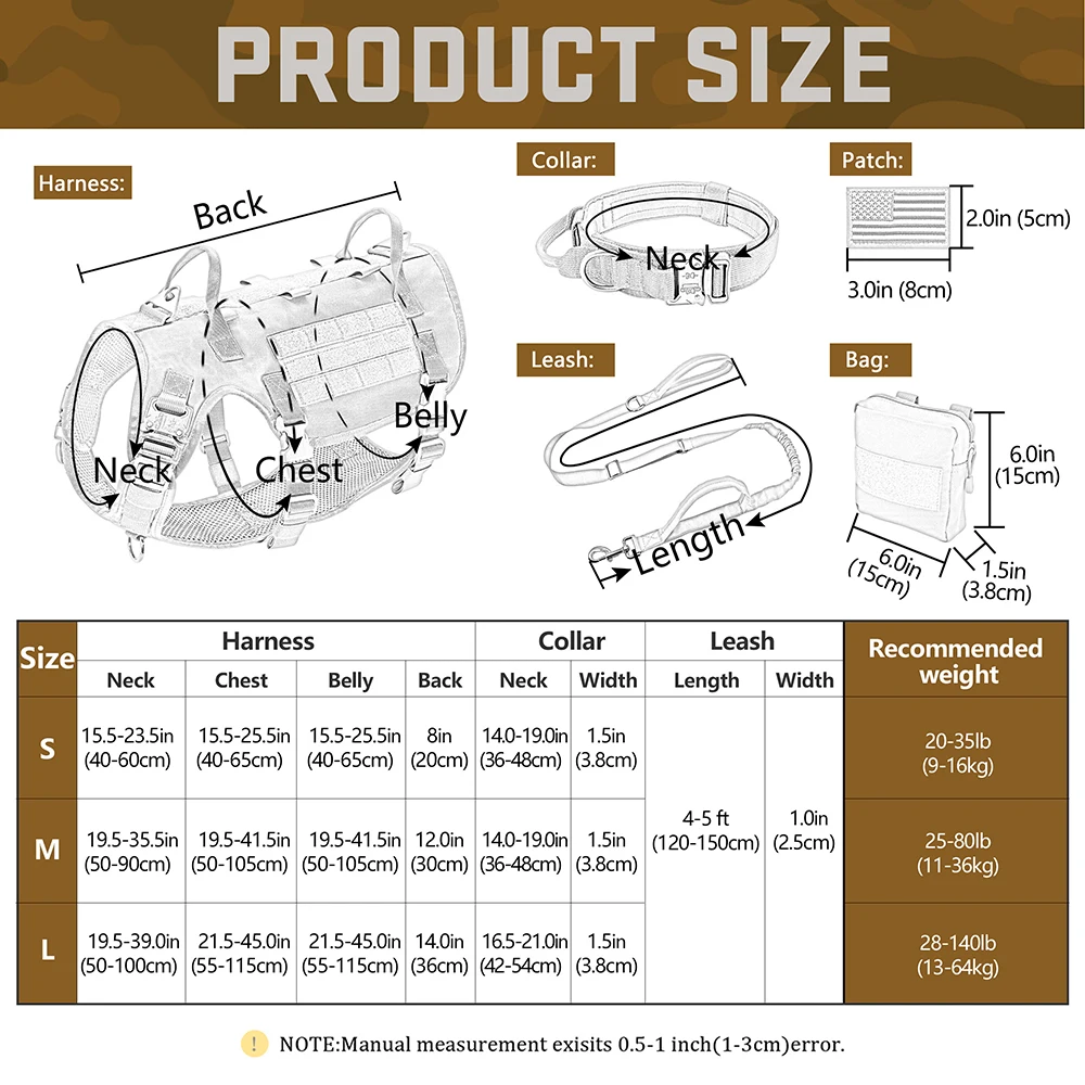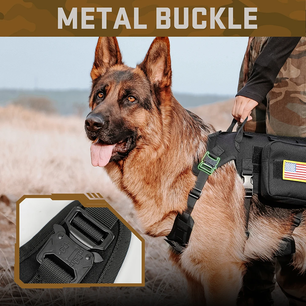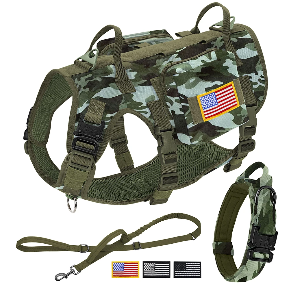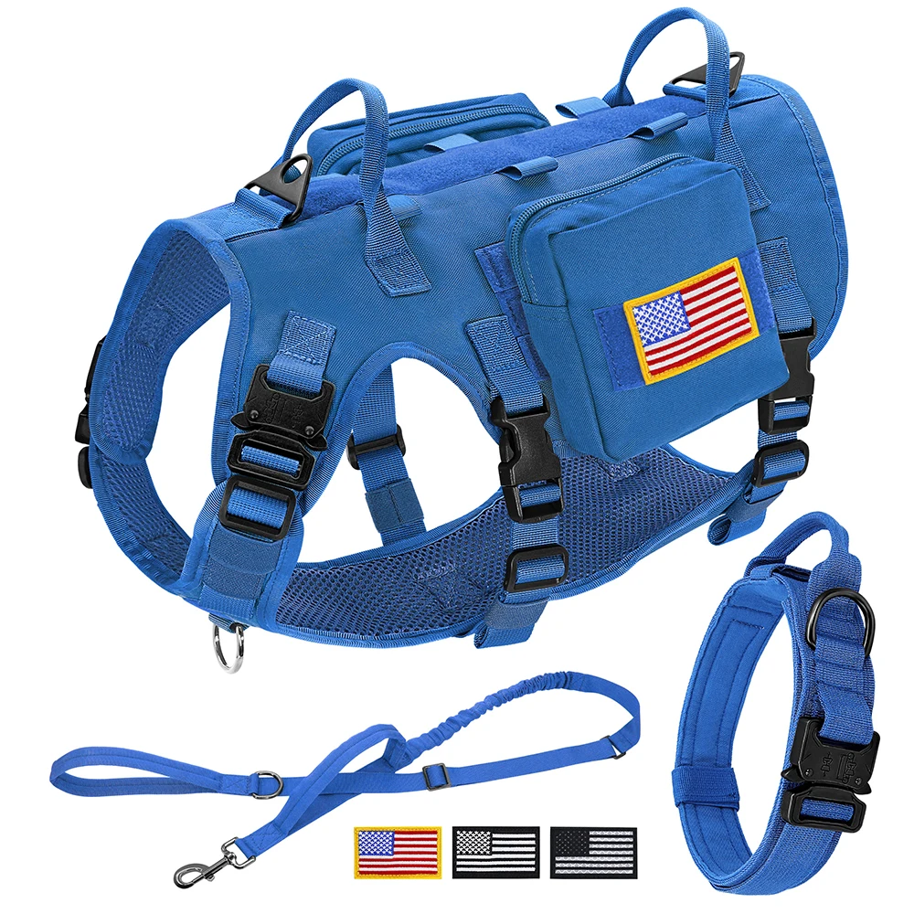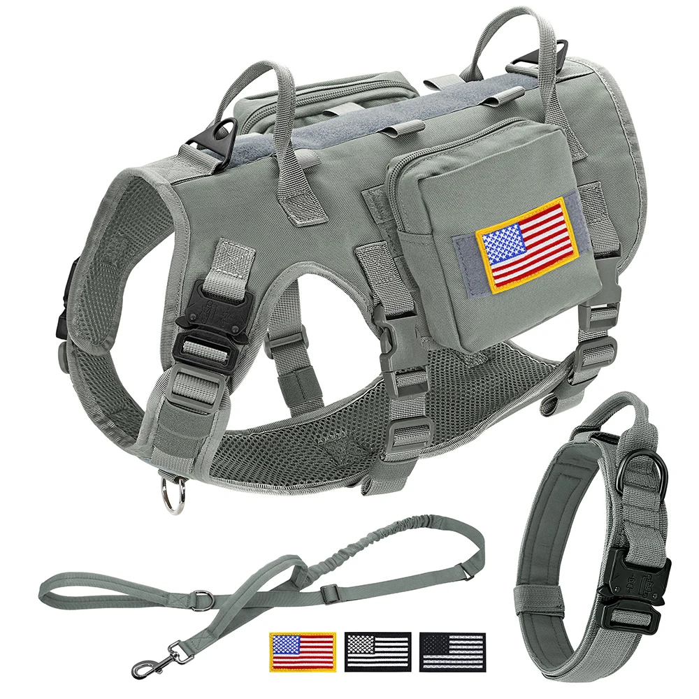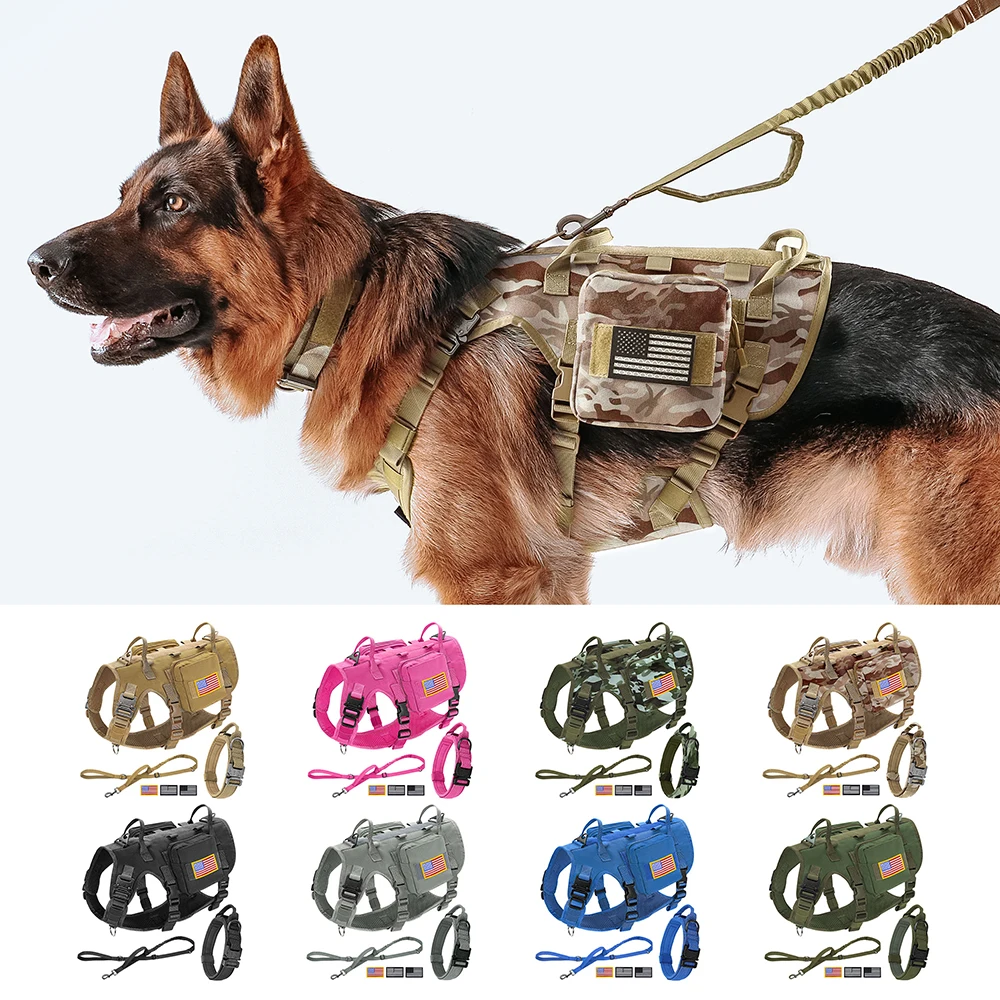 Tactical Dog Harness Collar Leash Set Military Training Pet Vest with Pouches Flags Durable Collars for Big Dogs German Shepherd