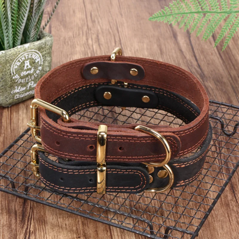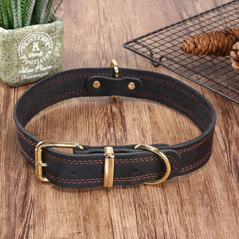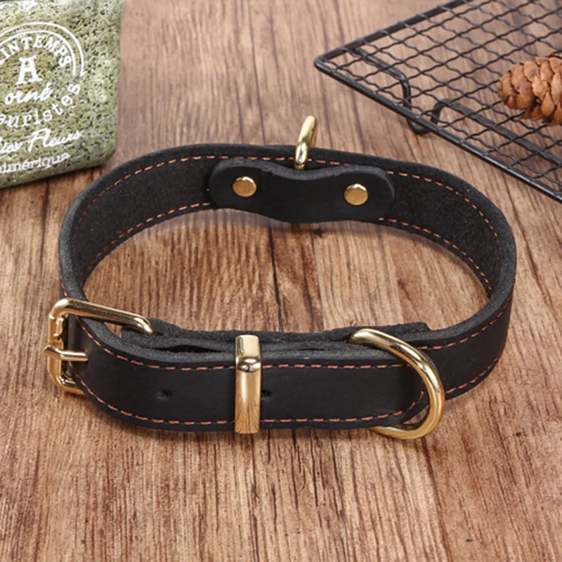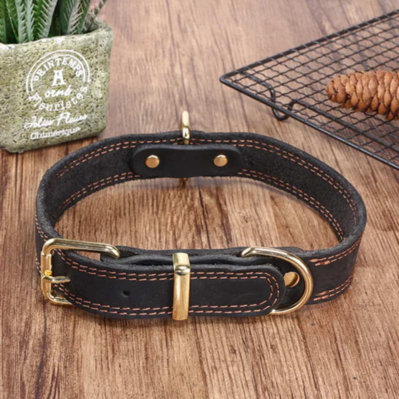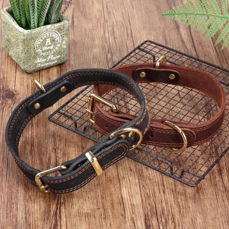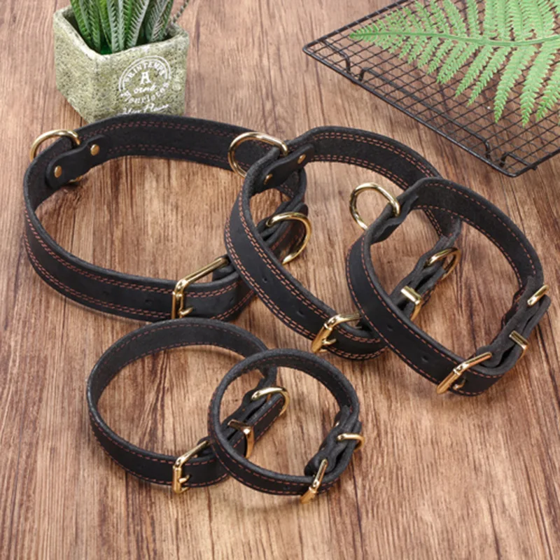 Top Grain Leather Dog Collar-Handcrafted Adjustable Collar for Small Medium Large Dogs Soft Lined Pet Necklace for Teddy German